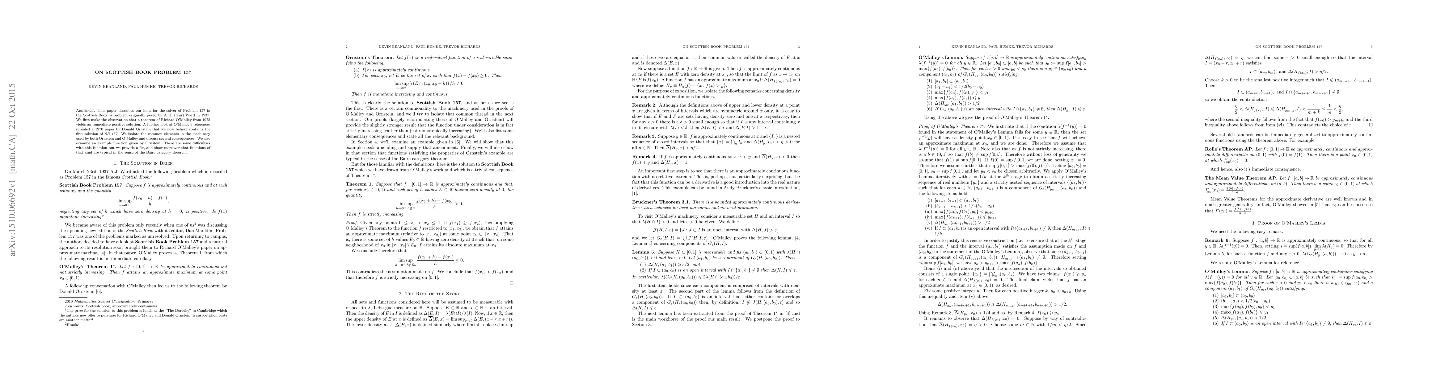 This paper describes our hunt for the solver of Problem 157 in the Scottish Book, a problem originally posed by A.~J. (Gus) Ward in 1937. We first make the observation that a theorem of Richard O'Malley from 1975 yields an immediate positive solution. A further look at O'Malley's references revealed a 1970 paper by Donald Ornstein that we now believe contains the first solution of {\em SB 157}. We isolate the common elements in the machinery used by both Ornstein and O'Malley and discuss several consequences. We also examine an example function given by Ornstein. There are some difficulties with this function but we provide a fix, and show moreover that functions of that kind are typical in the sense of the Baire category theorem.