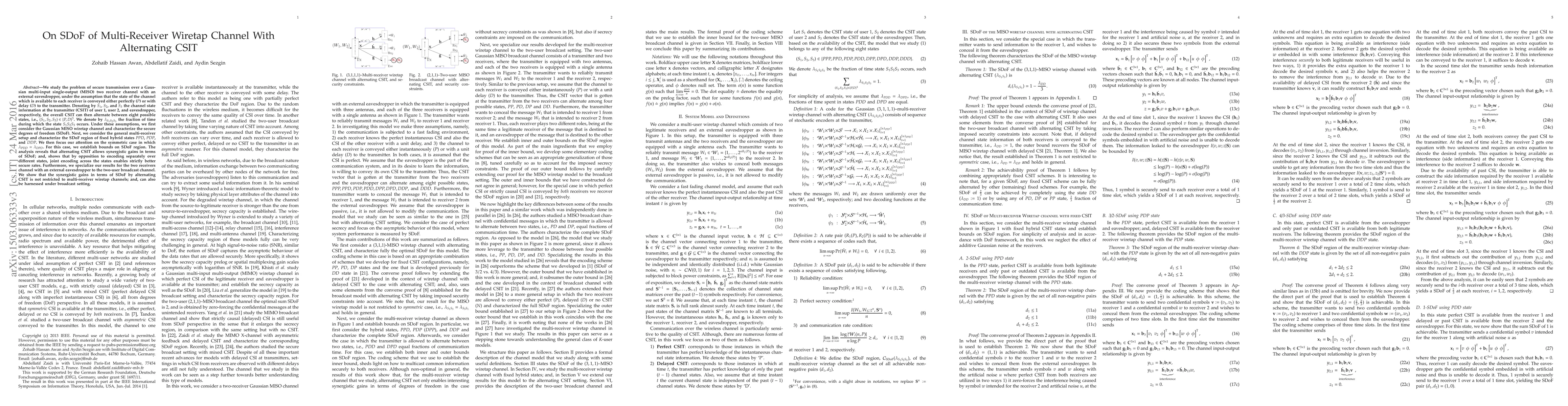 Researchers study secure transmission over a multi-receiver channel with an external eavesdropper, finding that alternating channel state information (CSIT) enables synergistic gains in secure degrees of freedom and strictly better secure rates compared to separate encoding.