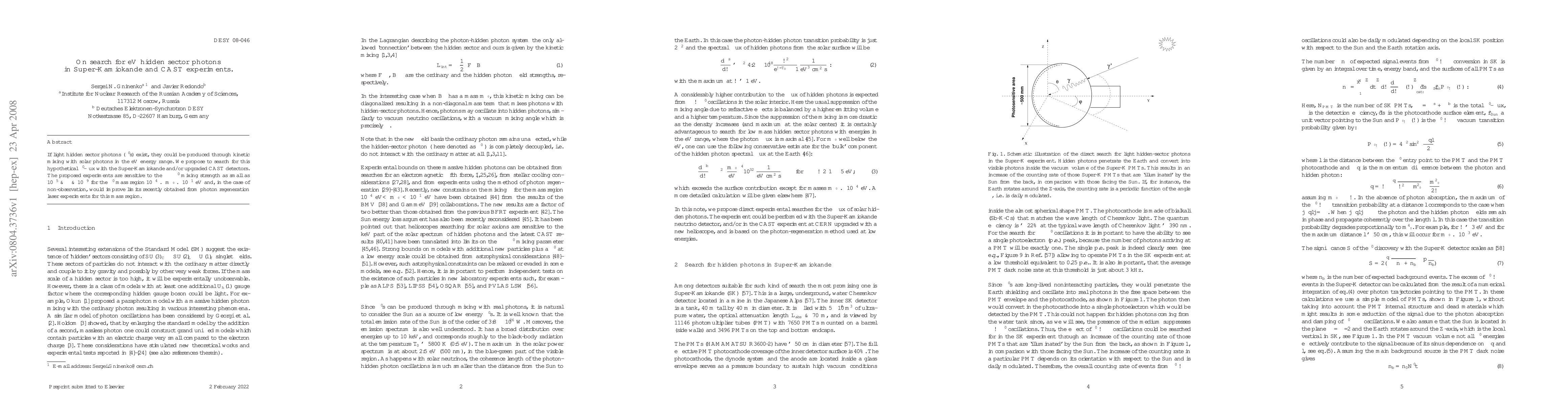 This paper proposes using the Super-Kamiokande and upgraded CAST detectors to search for eV hidden sector photons produced via kinetic mixing with solar photons. The experiments aim to detect mixing strengths as small as 10^-9 for hidden photon masses in the sub eV range, potentially improving existing limits from photon regeneration laser experiments.
