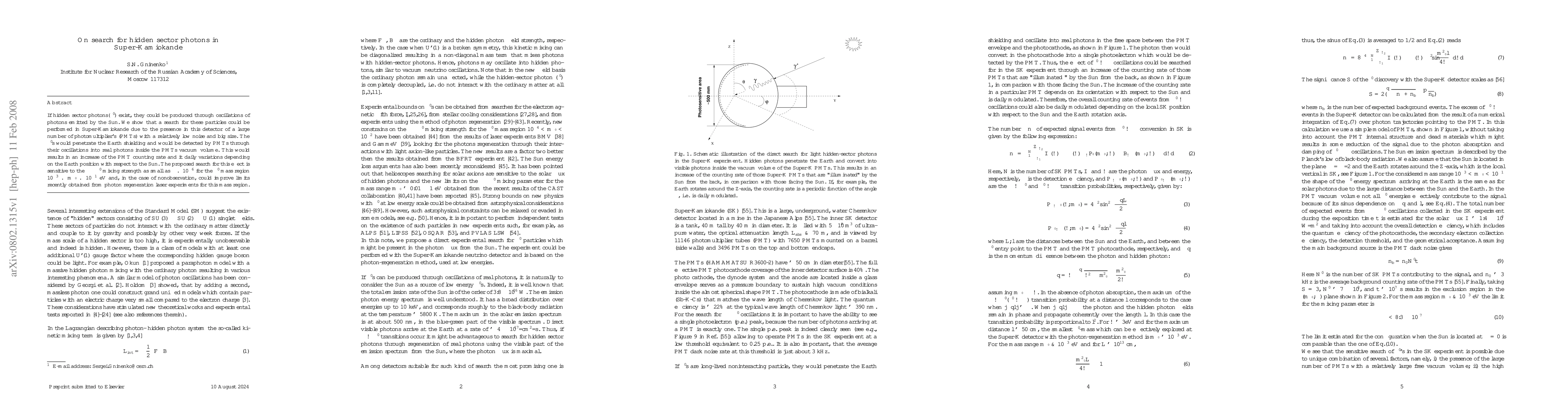 This paper proposes a search for hidden sector photons in Super-Kamiokande, utilizing its large photomultiplier tubes to detect potential oscillations of solar photons into hidden photons. The study aims to improve limits on photon-hidden photon mixing strength, particularly in the mass range of 10^{-3} - 10^{-1} eV.