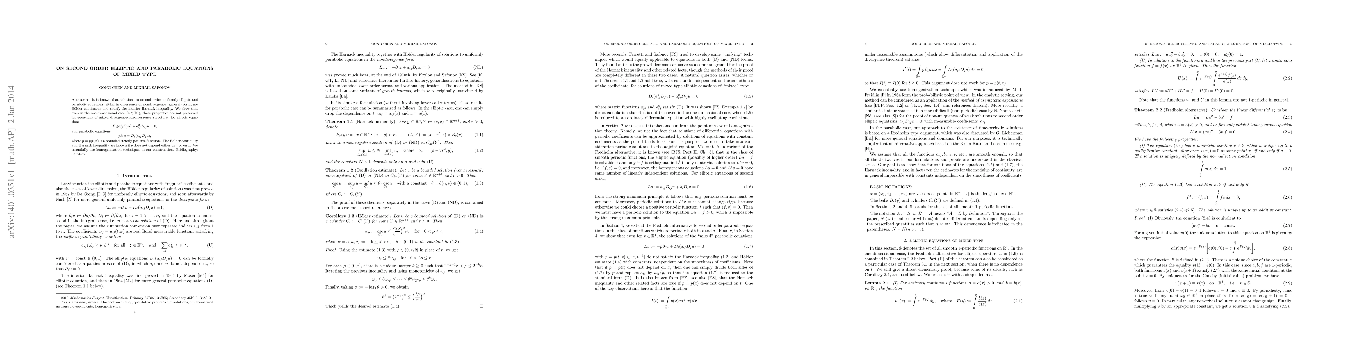 It is known that solutions to second order uniformly elliptic and parabolic equations, either in divergence or nondivergence (general) form, are H\"{o}lder continuous and satisfy the interior Harnack inequality. We show that even in the one-dimensional case ($x\in R^1$), these properties are not preserved for equations of mixed divergence-nondivergence structure: for elliptic equations. \begin{equation*} D_i(a^1_{ij}D_ju)+a^2_{ij}D_{ij}u=0, \end{equation*} and parabolic equations \begin{equation*} p\partial_t u=D_i(a_{ij}D_ju), \end{equation*} where $p=p(t,x)$ is a bounded strictly positive function. The H\"{o}lder continuity and Harnack inequality are known if $p$ does not depend either on $t$ or on $x$. We essentially use homogenization techniques in our construction. Bibliography: 23 titles.