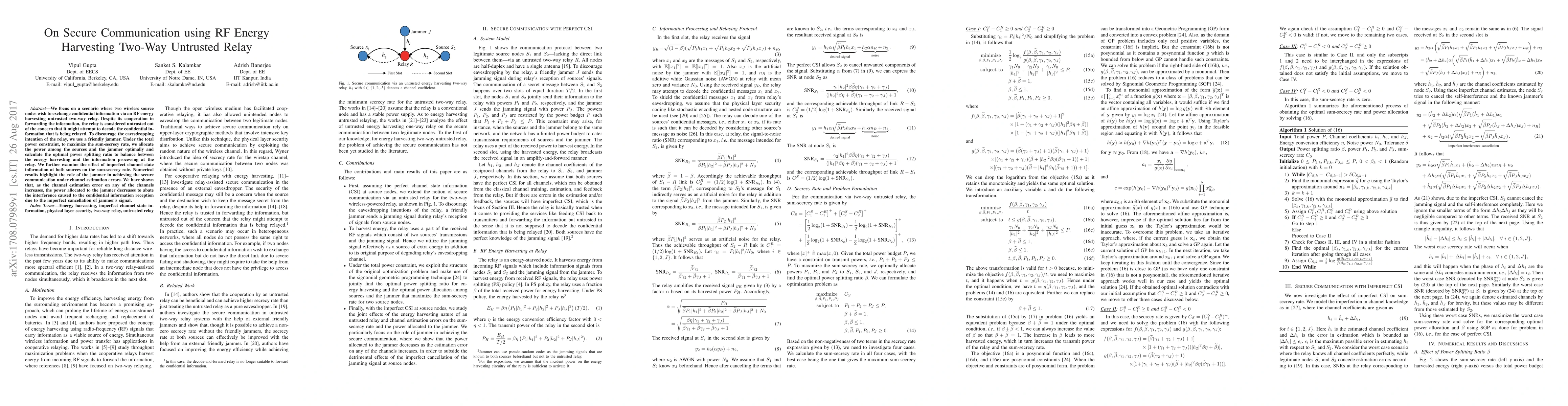 This paper explores secure communication using RF energy harvesting in an untrusted two-way relay scenario, employing a friendly jammer to prevent relay eavesdropping. It optimizes power allocation to maximize the sum-secrecy rate under power constraints and examines the impact of imperfect channel state information.