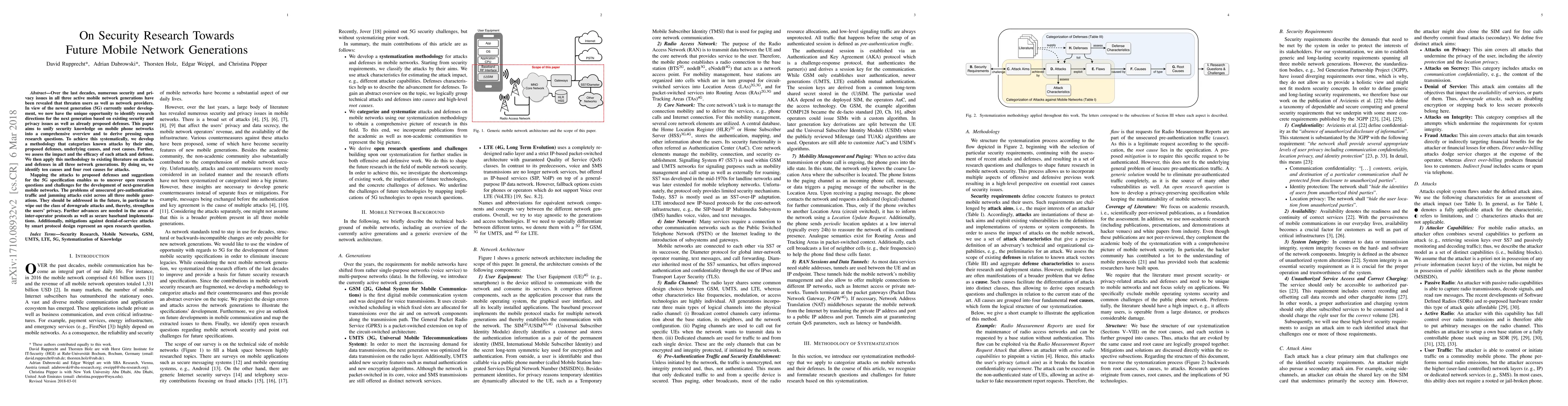 This paper systematically reviews security and privacy issues across three mobile network generations to identify research directions for 5G. It categorizes known attacks and defenses, revealing ten causes and four root causes of attacks, and highlights open research questions, particularly in pre-authentication traffic security, inter-operator protocols, and denial-of-service attack mitigations.
