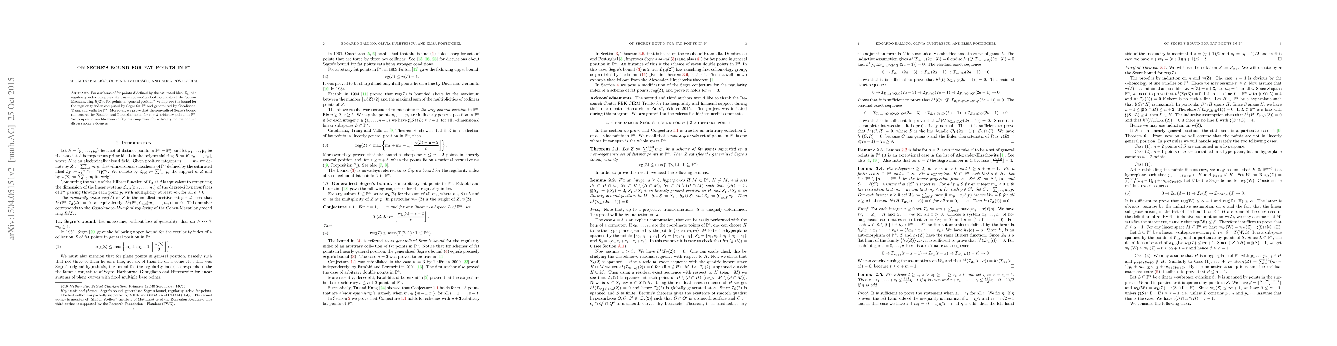 This paper improves Segre's bound for the regularity index of fat points in projective space $\mathbb{P}^n$, proving the generalised conjecture for $n+3$ points and proposing a modified conjecture for arbitrary points.