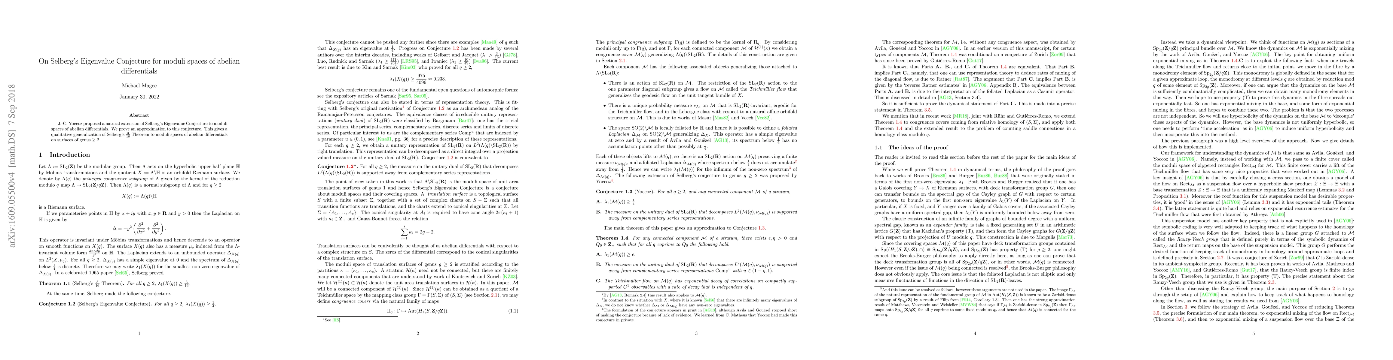 This paper proves an approximation to J.-C. Yoccoz's extension of Selberg's Eigenvalue Conjecture to moduli spaces of abelian differentials, thus qualitatively generalizing Selberg's $\frac{3}{16}$ Theorem to surfaces of genus $\geq 2$.