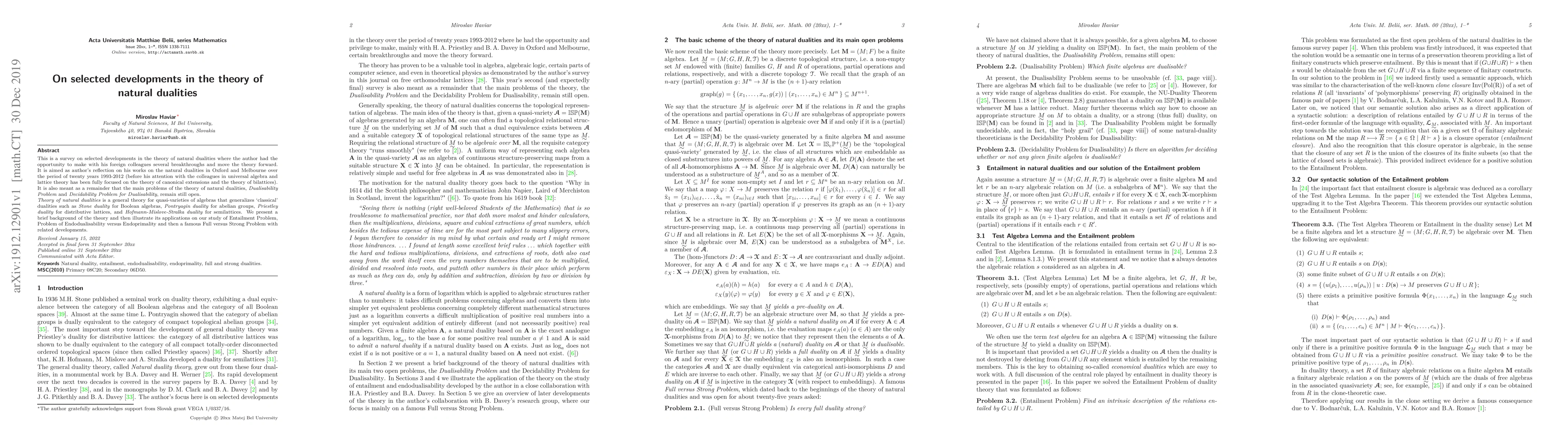 This paper surveys significant developments in the theory of natural dualities achieved by the author over 20 years, focusing on breakthroughs made with foreign colleagues. Despite progress, the Dualisability Problem and Decidability Problem for Dualisability remain unsolved.