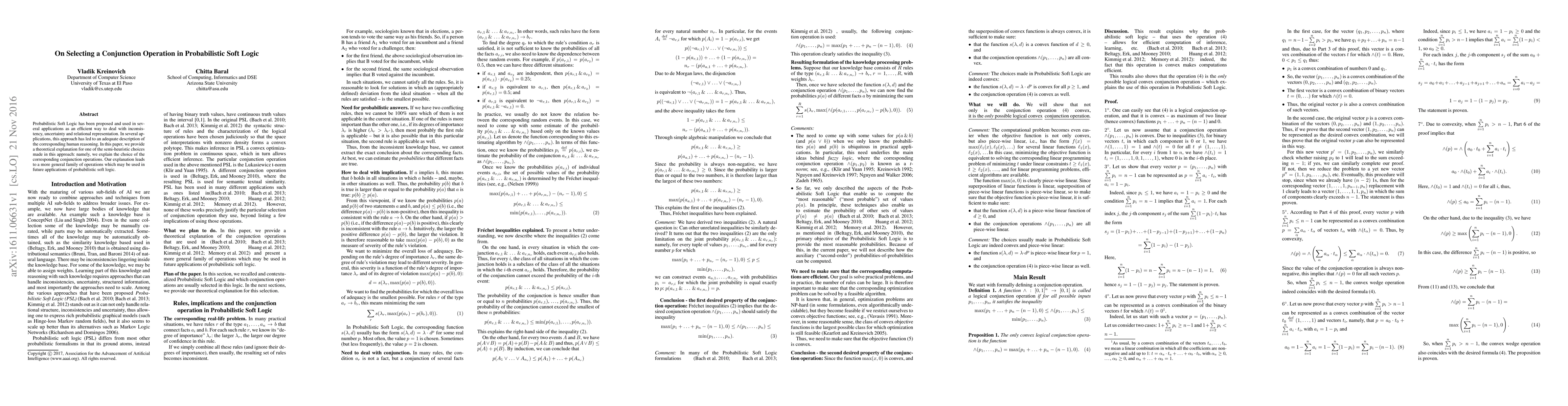 This paper explores the theoretical underpinnings of conjunction operations in Probabilistic Soft Logic, providing a rationale for the semi-heuristic choices and introducing a broader family of operations for future applications.