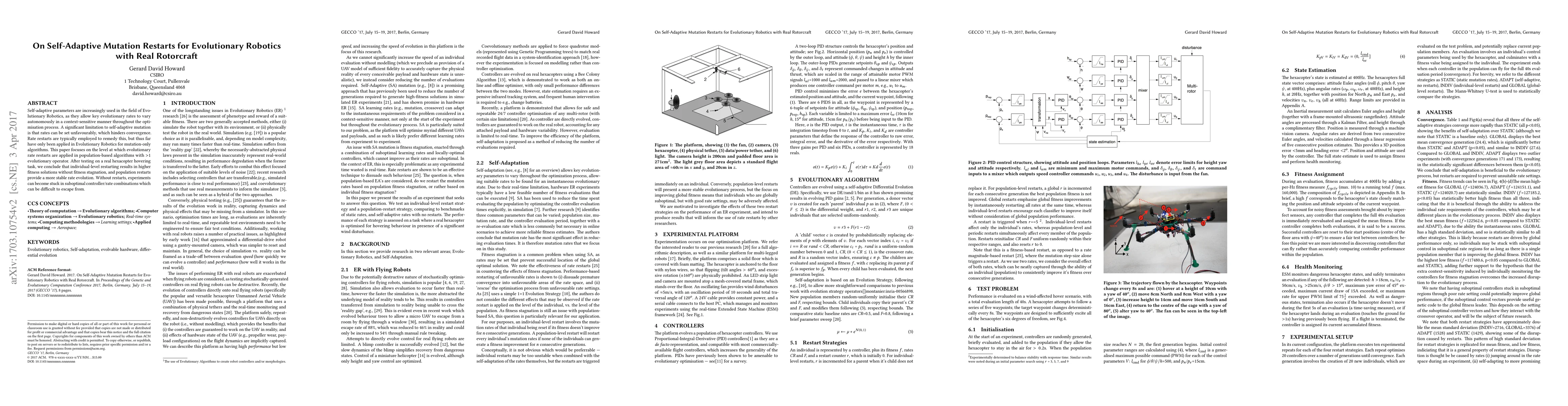 Self-adaptive parameters are increasingly used in the field of Evolutionary Robotics, as they allow key evolutionary rates to vary autonomously in a context-sensitive manner throughout the optimisation process. A significant limitation to self-adaptive mutation is that rates can be set unfavourably, which hinders convergence. Rate restarts are typically employed to remedy this, but thus far have only been applied in Evolutionary Robotics for mutation-only algorithms. This paper focuses on the level at which evolutionary rate restarts are applied in population-based algorithms with more than 1 evolutionary operator. After testing on a real hexacopter hovering task, we conclude that individual-level restarting results in higher fitness solutions without fitness stagnation, and population restarts provide a more stable rate evolution. Without restarts, experiments can become stuck in suboptimal controller/rate combinations which can be difficult to escape from.