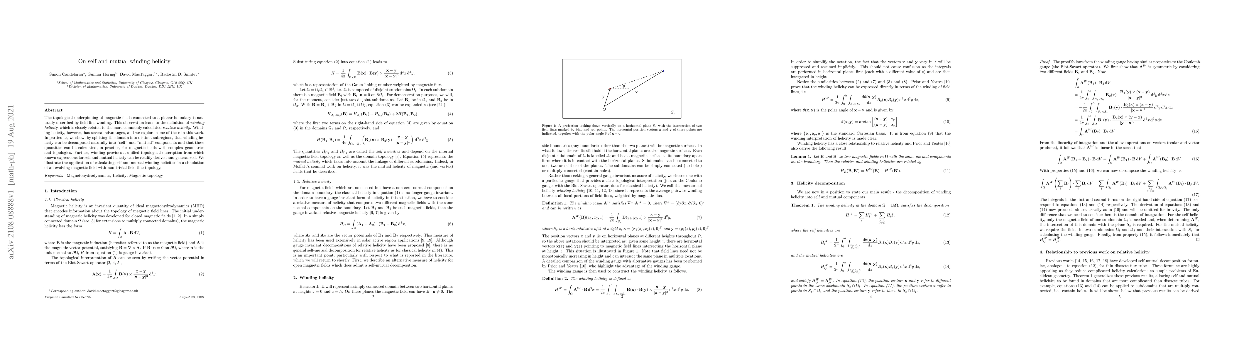 The topological underpinning of magnetic fields connected to a planar boundary is naturally described by field line winding. This observation leads to the definition of winding helicity, which is closely related to the more commonly calculated relative helicity. Winding helicity, however, has several advantages, and we explore some of these in this work. In particular, we show, by splitting the domain into distinct subregions, that winding helicity can be decomposed naturally into "self" and "mutual" components and that these quantities can be calculated, in practice, for magnetic fields with complex geometries and topologies. Further, winding provides a unified topological description from which known expressions for self and mutual helicity can be readily derived and generalized. We illustrate the application of calculating self and mutual winding helicities in a simulation of an evolving magnetic field with non-trivial field line topology.