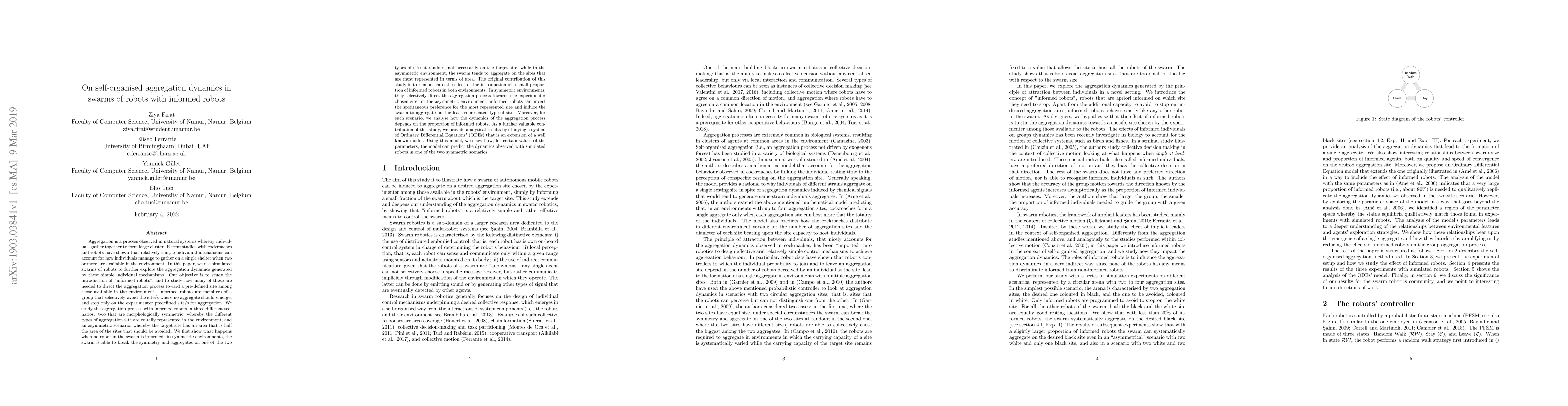 Andreagiovanni Reina, Mauro Birattari, Elio Tuci et al.