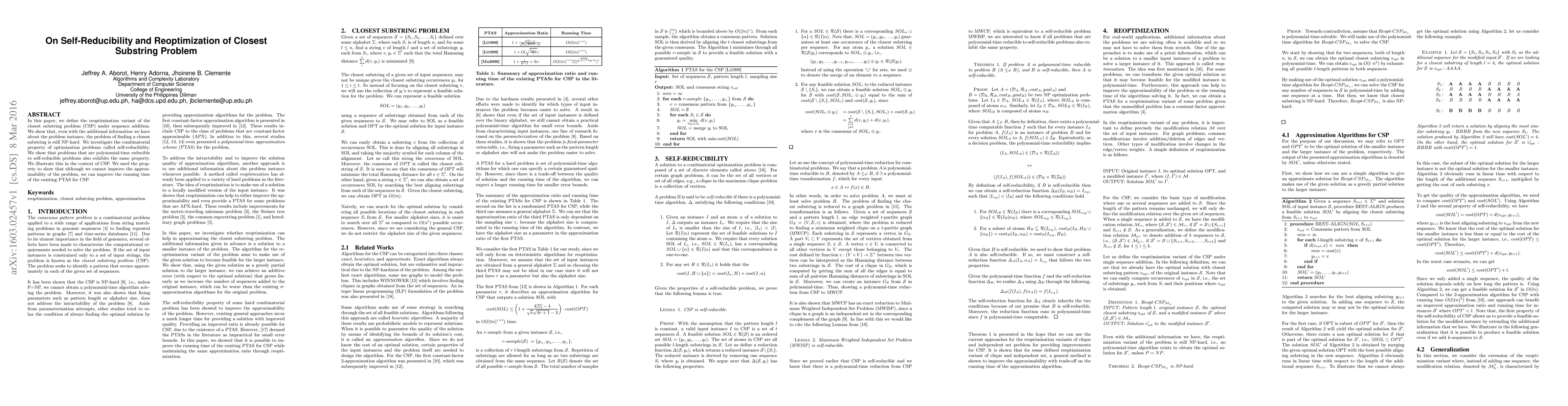 Researchers showed that adding more information to the Closest Substring Problem doesn't make it easier to solve, but using a related concept called self-reducibility can improve running times for existing solutions.