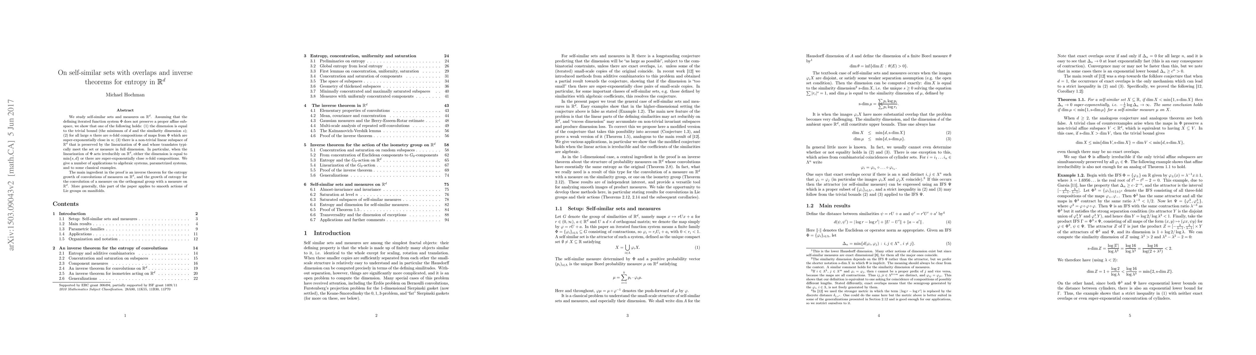 This paper investigates self-similar sets and measures in $\mathbb{R}^{d}$, proving that under certain conditions, the dimension is minimal, compositions of maps are super-exponentially close, or a non-trivial linear subspace is preserved. The proof leverages an inverse theorem for entropy growth in convolutions, applicable to smooth actions of Lie groups.