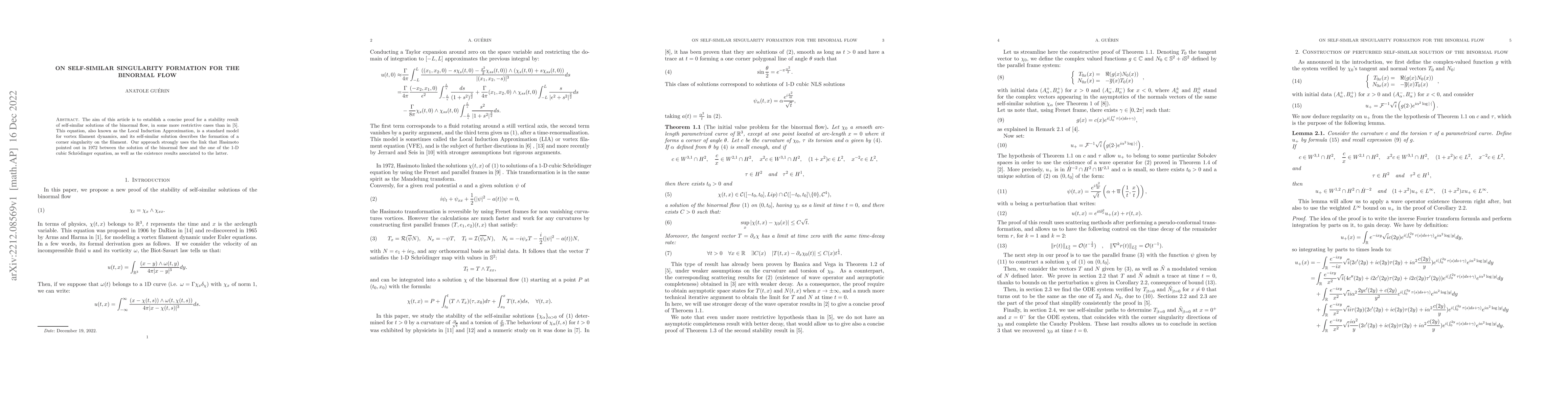 This paper provides a concise proof for the stability of self-similar solutions of the binormal flow, a model for vortex filament dynamics, focusing on more restrictive cases. It leverages the connection between the binormal flow and the 1-D cubic Schrödinger equation to describe the formation of corner singularities.