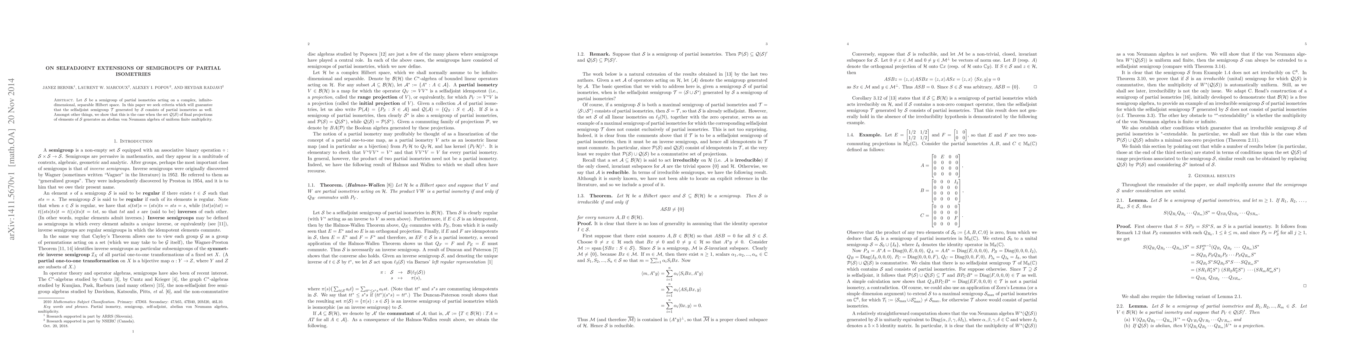 This paper explores conditions for the selfadjoint semigroup $\mathcal T$ generated by a semigroup $\mathcal S$ of partial isometries to also consist of partial isometries, demonstrating that this occurs when the final projections of $\mathcal S$ generate an abelian von Neumann algebra of uniform finite multiplicity.