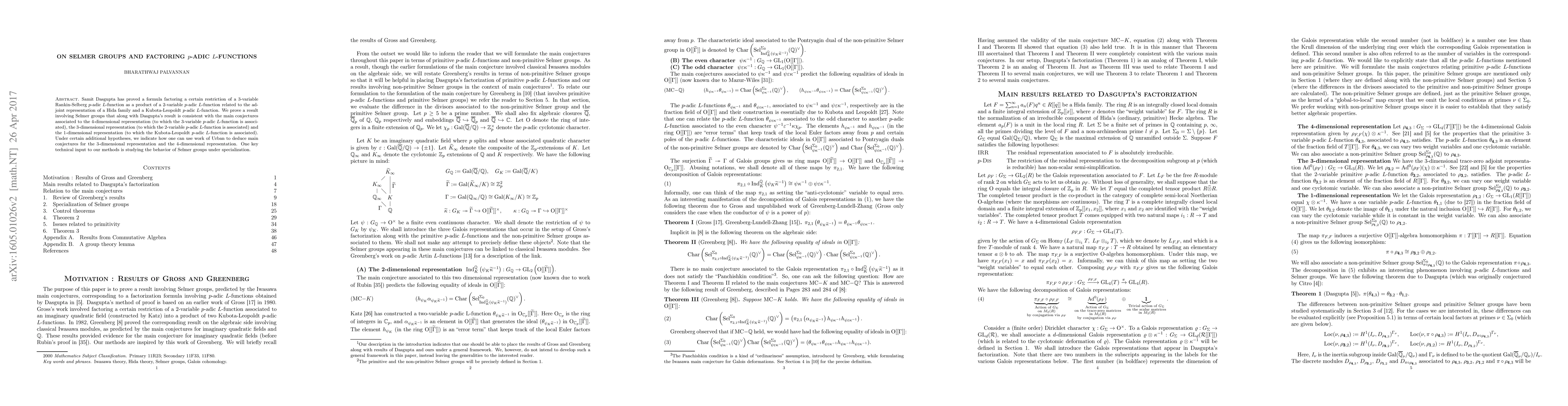 This paper proves a result involving Selmer groups that complements a formula by Samit Dasgupta factoring a 3-variable $p$-adic $L$-function, supporting main conjectures for associated representations. It also shows how Urban's work can deduce main conjectures under additional hypotheses, using Selmer groups' behavior under specialization as a key technical input.
