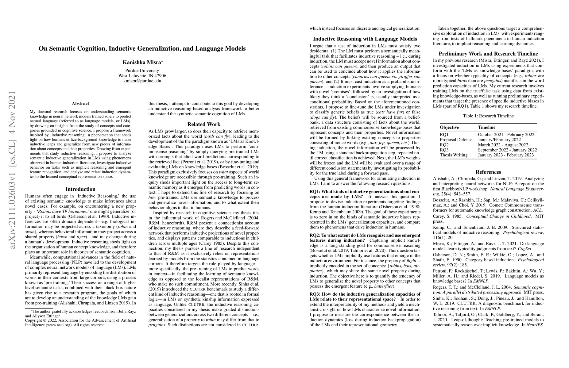 My doctoral research focuses on understanding semantic knowledge in neural network models trained solely to predict natural language (referred to as language models, or LMs), by drawing on insights from the study of concepts and categories grounded in cognitive science. I propose a framework inspired by 'inductive reasoning,' a phenomenon that sheds light on how humans utilize background knowledge to make inductive leaps and generalize from new pieces of information about concepts and their properties. Drawing from experiments that study inductive reasoning, I propose to analyze semantic inductive generalization in LMs using phenomena observed in human-induction literature, investigate inductive behavior on tasks such as implicit reasoning and emergent feature recognition, and analyze and relate induction dynamics to the learned conceptual representation space.