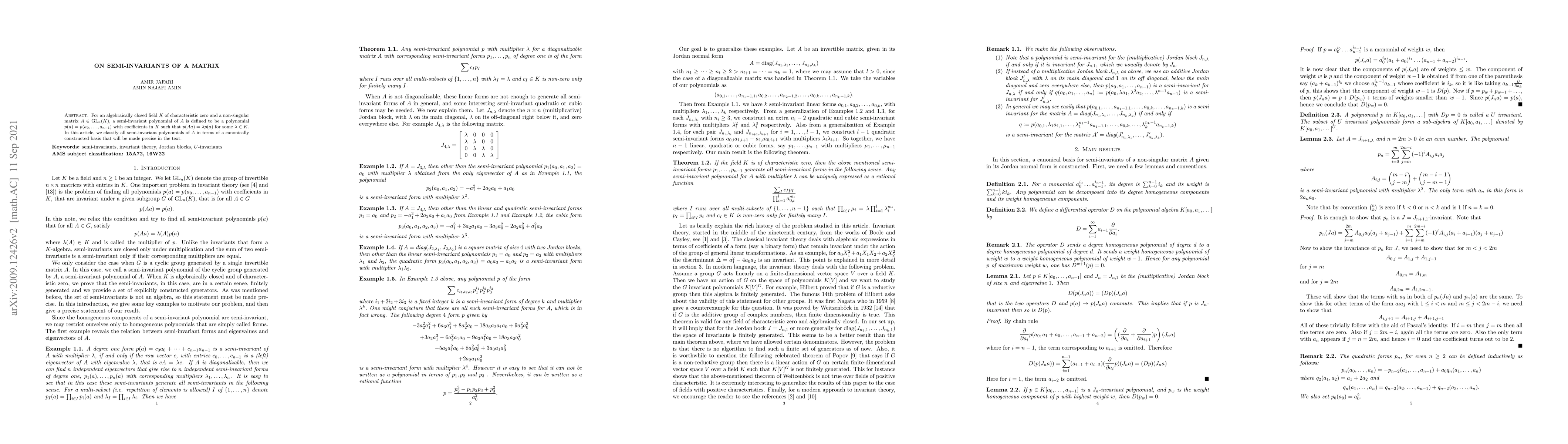 This paper classifies semi-invariant polynomials of a matrix A in terms of a canonically constructed basis, providing a systematic way to analyze and understand the properties of these polynomials.