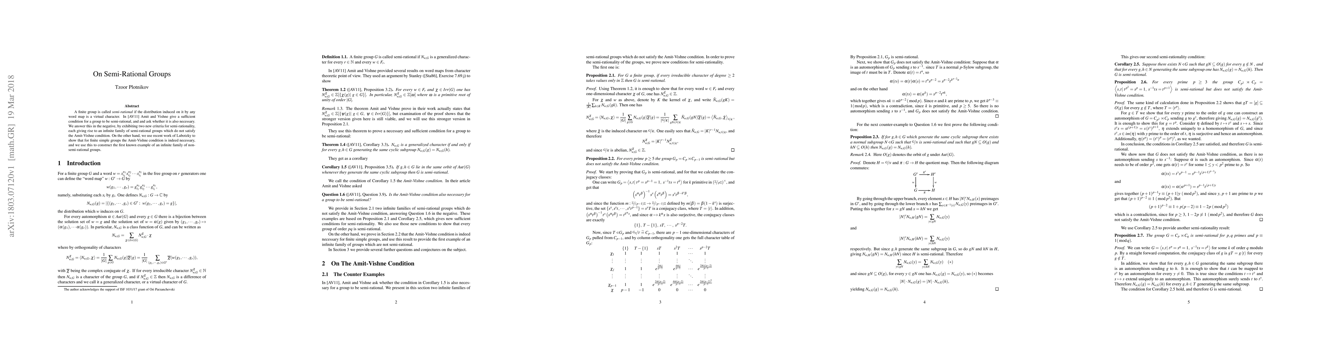 Researchers found that a group is semi-rational if it meets certain new criteria, disproving a previous condition. They also showed that for simple groups, the previous condition is necessary for semi-rationality.