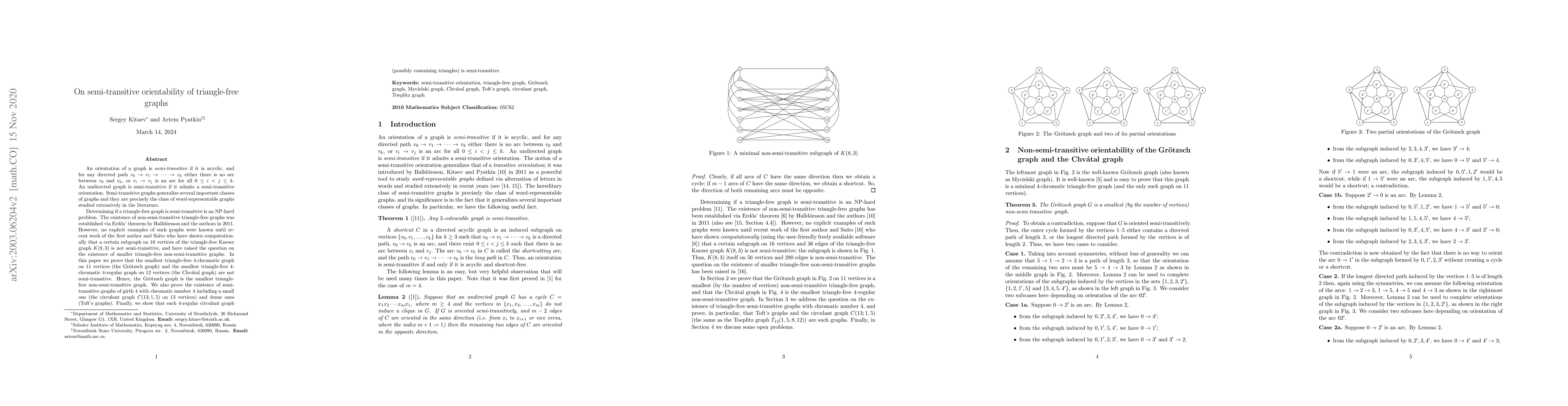 An orientation of a graph is semi-transitive if it is acyclic, and for any