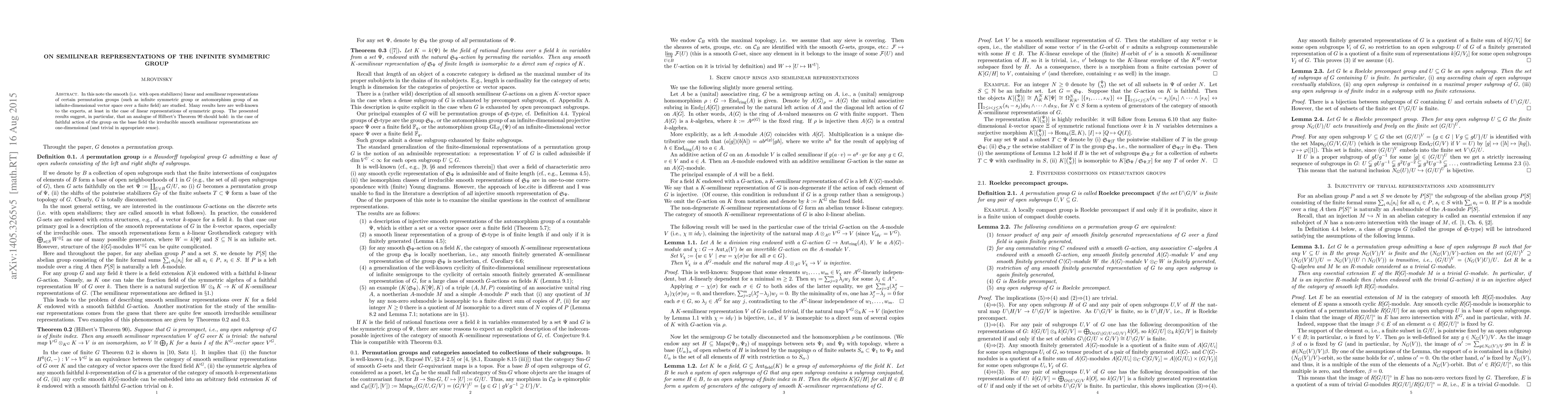 This paper explores smooth linear and semilinear representations of permutation groups, including the infinite symmetric group, and suggests that an analogue of Hilbert's Theorem 90 holds for these representations, indicating that irreducible smooth semilinear representations are one-dimensional under faithful action.