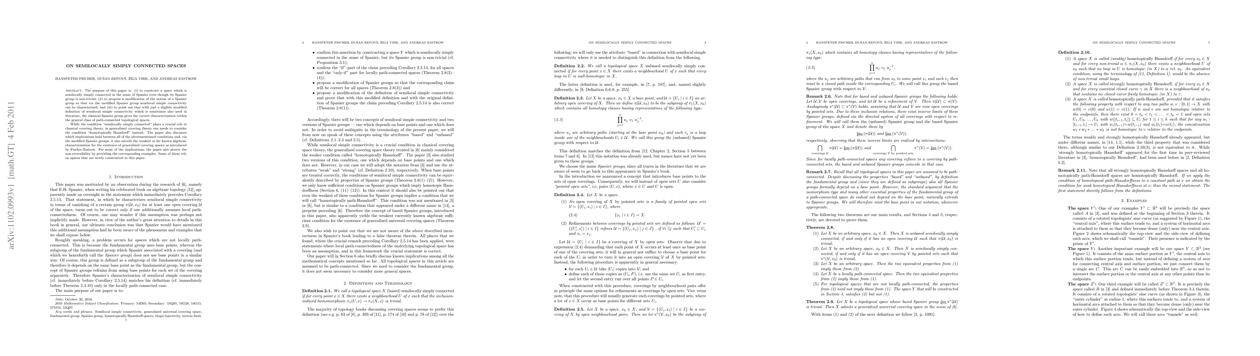This paper constructs a semilocally simply connected space with a non-trivial Spanier group, proposes a modified Spanier group to better characterize semilocal simple connectivity, and discusses implications between various connectivity conditions. It also introduces the weakest known algebraic characterization for generalized covering spaces.