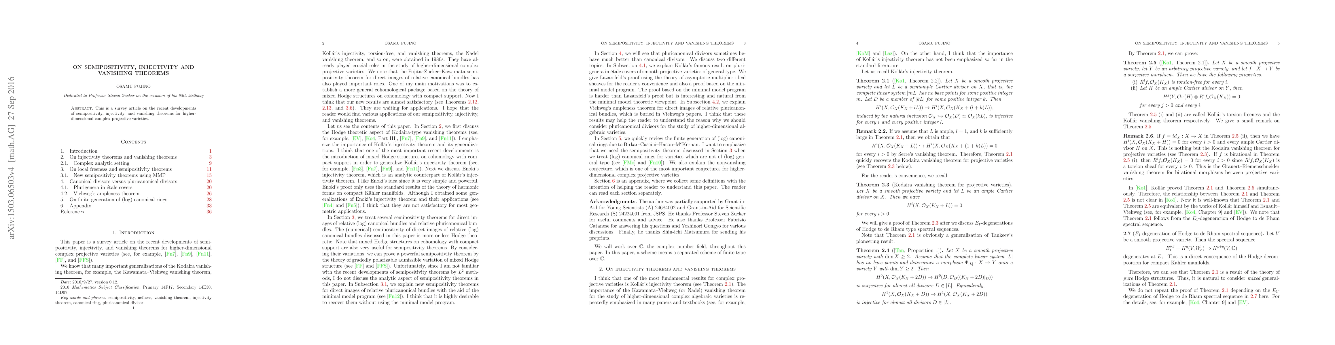 Summary: This survey article explores recent advancements in semipositivity, injectivity, and vanishing theorems, focusing on their applications to higher-dimensional complex projective varieties. It highlights significant developments and their implications in algebraic geometry.