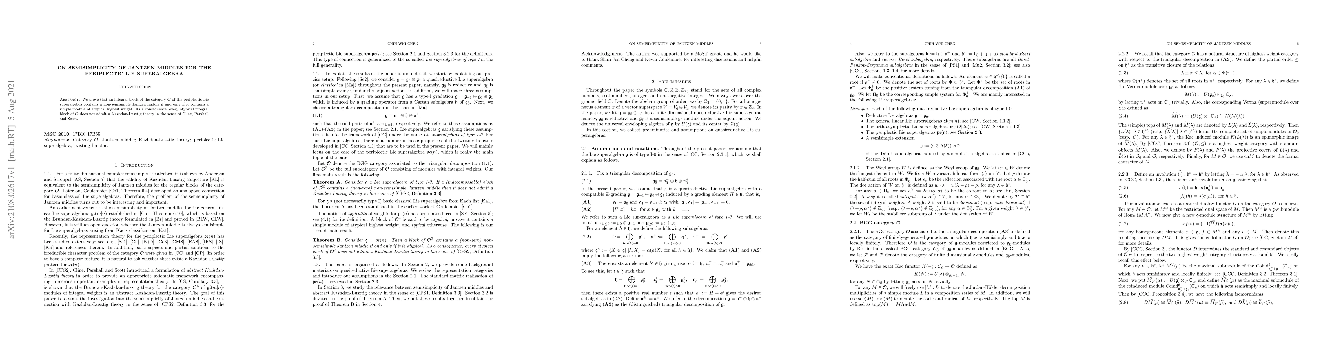 Summary: The paper establishes that integral blocks in the category $\mathcal O$ of periplectic Lie superalgebras contain non-semisimple Jantzen middles if they include simple modules with atypical highest weights, implying these blocks cannot support a Kazhdan-Lusztig theory.