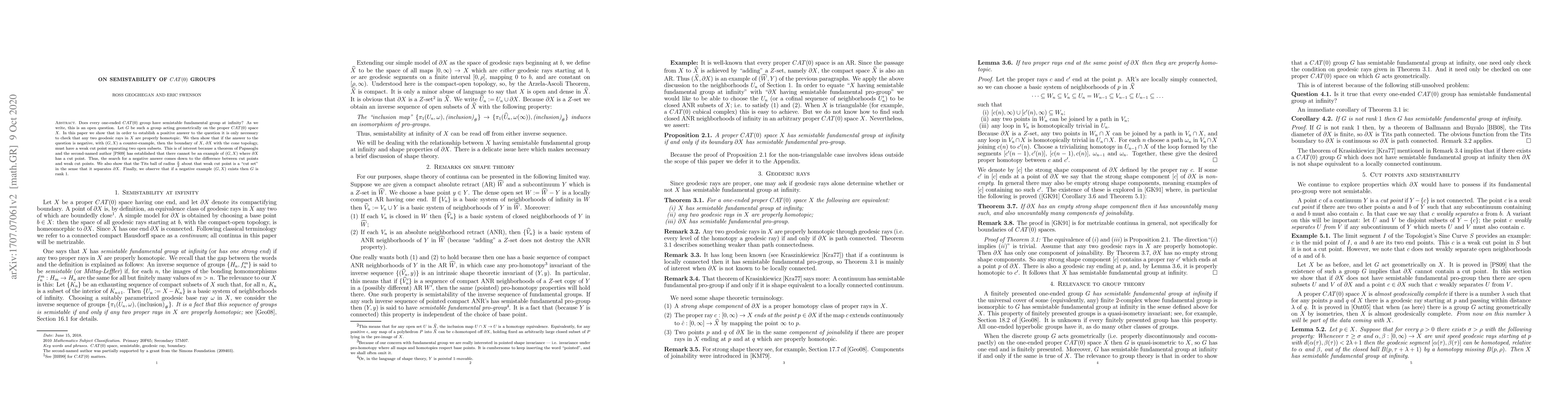 Does every one-ended $CAT(0)$ group have semistable fundamental group at infinity? As we write, this is an open question. Let $G$ be such a group acting geometrically on the proper $CAT(0)$ space $X$. In this paper we show that in order to establish a positive answer to the question it is only necessary to check that any two geodesic rays in $X$ are properly homotopic. We then show that if the answer to the question is negative, with $(G,X)$ a counter-example, then the boundary of $X$, $\del X$ with the cone topology, must have a weak cut point. This is of interest because a theorem of Papasoglu and the second-named author \cite{PS} has established that there cannot be an example of $(G,X)$ where $\del X$ has a cut point. Thus, the search for a negative answer comes down to the difference between cut points and weak cut points. We also show that the Tits ball of radius $\frac{\pi}{2}$ about that weak cut point is a "cut set" in the sense that it separates $\del X$. Finally, we observe that if a negative example $(G, X)$ exists then $G$ is rank 1.