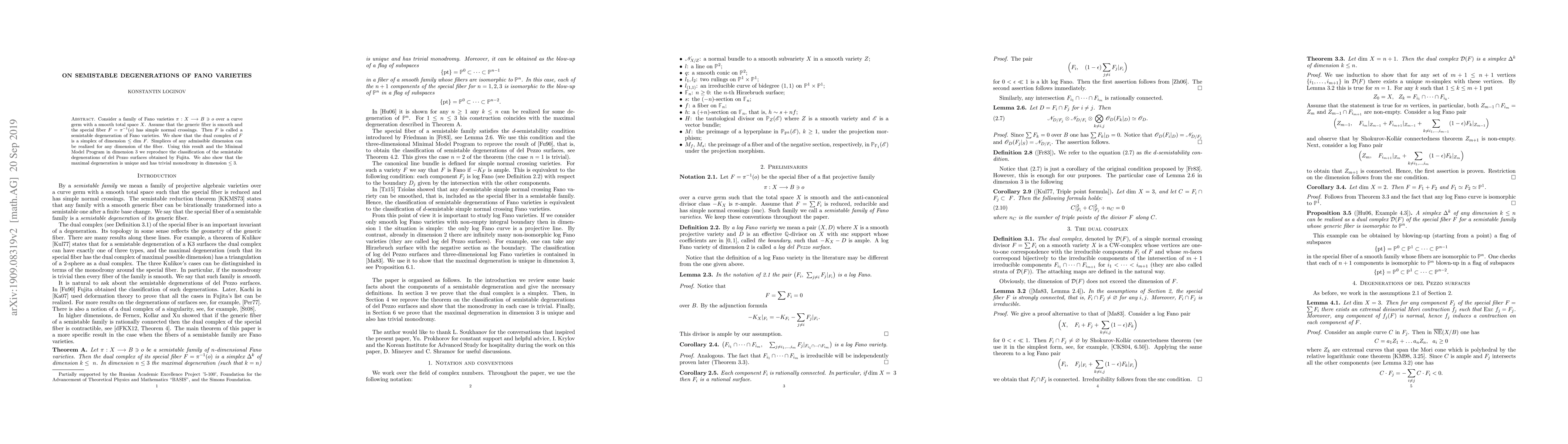 This paper studies semistable degenerations of Fano varieties over a curve, proving that the dual complex of the special fiber forms a simplex of dimension no greater than the fiber's dimension. It further demonstrates the classification of semistable degenerations of del Pezzo surfaces and shows the uniqueness and trivial monodromy of the maximal degeneration in dimension ≤ 3.