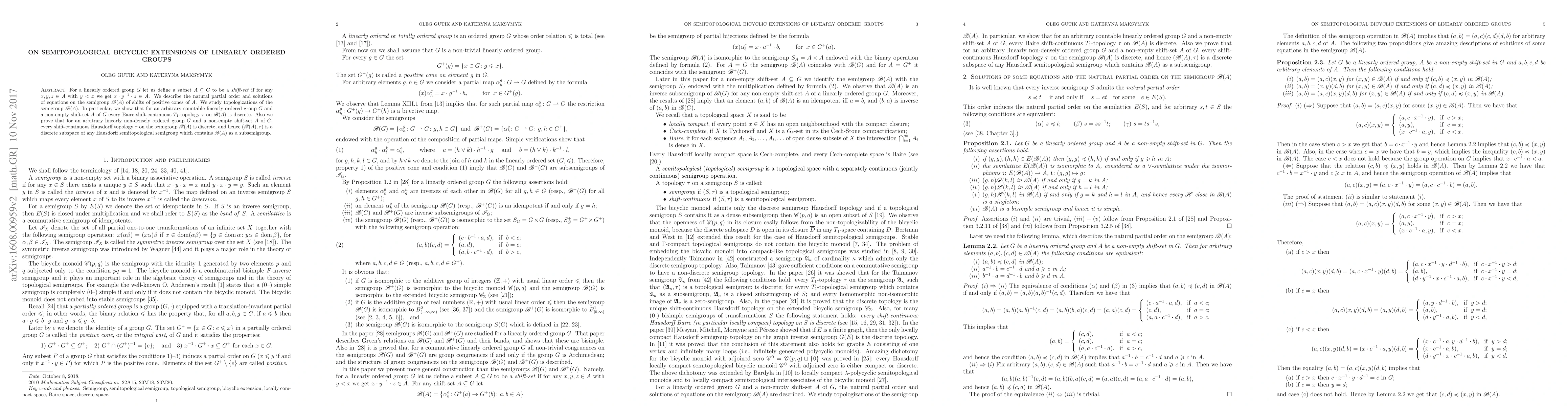 This paper explores semitopological bicyclic extensions of linearly ordered groups, focusing on shift-sets within these groups. It demonstrates that any Baire shift-continuous $T_1$-topology on the semigroup of shifts of positive cones of a countable linearly ordered group is discrete, and similarly, any shift-continuous Hausdorff topology on such a semigroup for a linearly non-densely ordered group is also discrete.