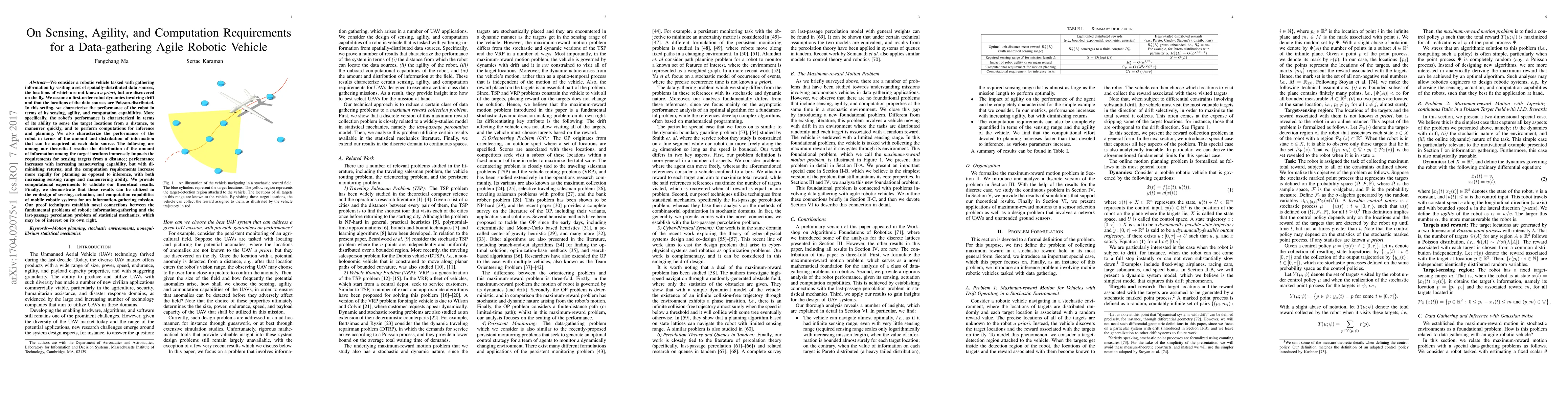 This paper investigates the sensing, agility, and computation needs for a robotic vehicle tasked with gathering data from unknown, Poisson-distributed locations. It finds that sensing range, maneuverability, and computational power significantly affect performance, with diminishing returns on agility and differing computational demands for planning versus inference.