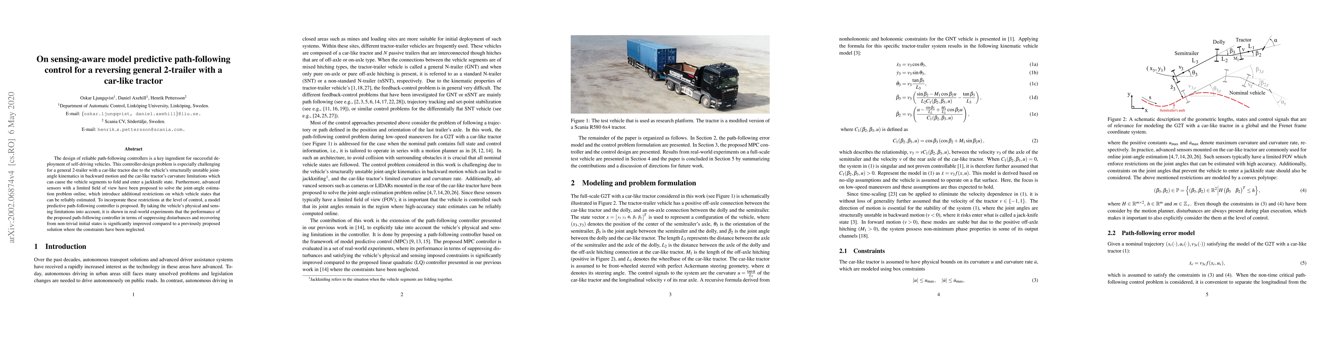 This paper proposes a sensing-aware model predictive path-following controller for a reversing general 2-trailer with a car-like tractor, addressing the vehicle's unstable joint-angle kinematics and sensor limitations. Real-world experiments demonstrate improved performance in disturbance suppression and recovery from initial states compared to previous methods.
