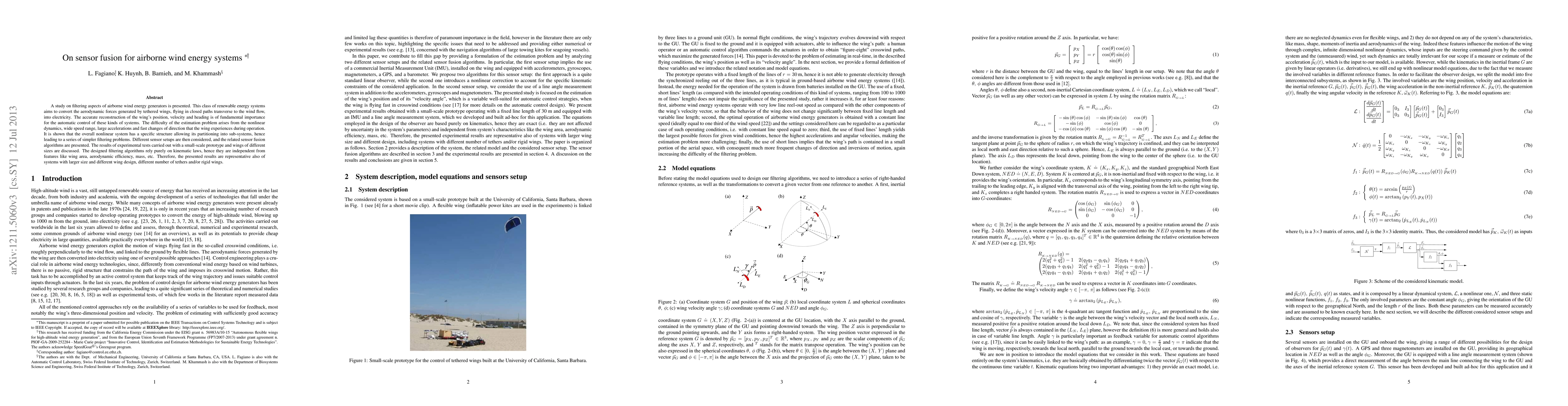 This paper explores sensor fusion techniques for controlling airborne wind energy systems, focusing on filtering algorithms to accurately estimate wing position, velocity, and heading. The study demonstrates that these complex systems can be simplified into manageable sub-systems, allowing for effective sensor fusion and control, validated through experiments with various prototype wings.