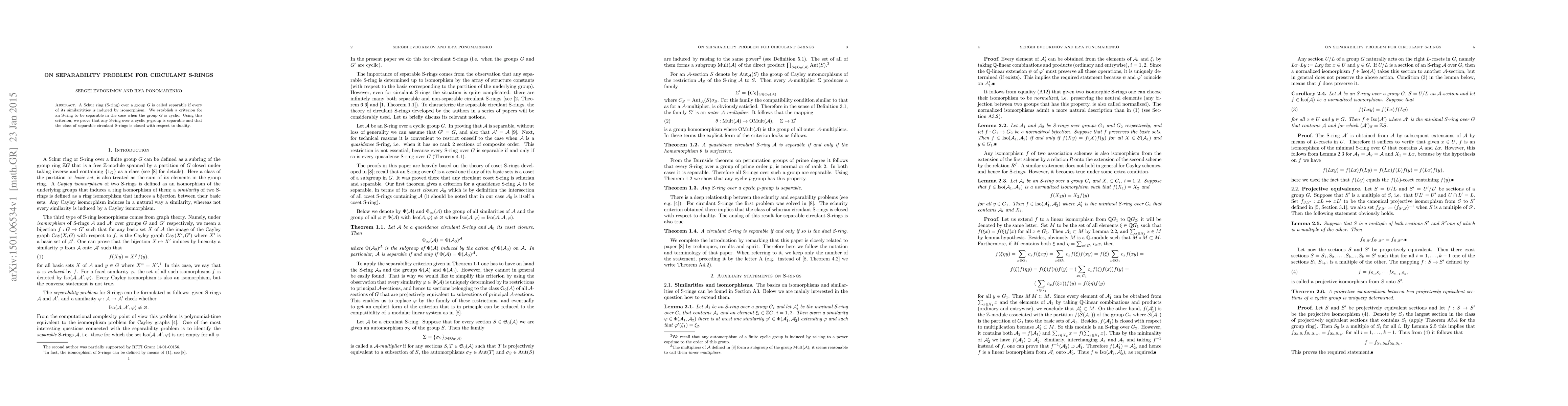 A Schur ring (S-ring) over a group $G$ is called separable if every of its similaritities is induced by isomorphism. We establish a criterion for an S-ring to be separable in the case when the group $G$ is cyclic. Using this criterion, we prove that any S-ring over a cyclic $p$-group is separable and that the class of separable circulant S-rings is closed with respect to duality.
