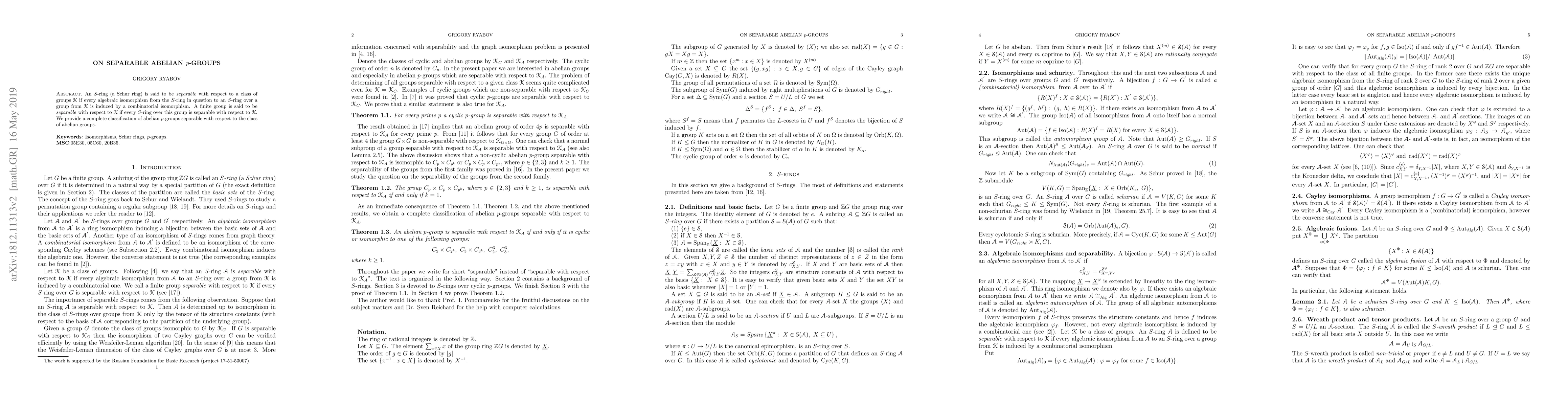 This paper classifies abelian p-groups as separable with respect to abelian groups, providing a complete understanding of their properties and implications for S-rings.