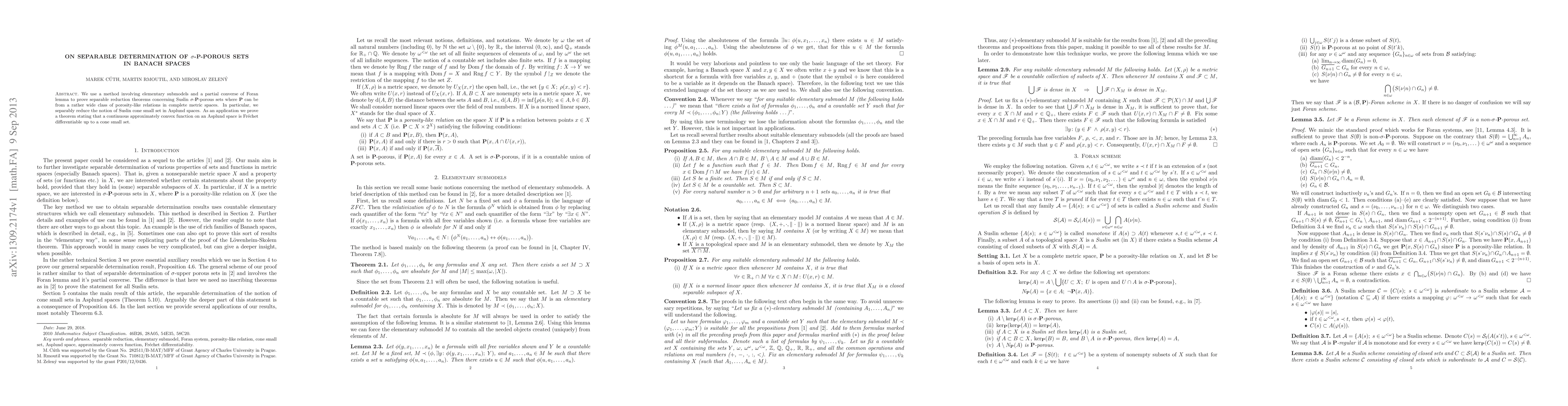 This paper proves separable reduction theorems for Suslin sigma-P-porous sets using elementary submodels and a partial converse of the Foran lemma. It applies these results to show that continuous approximately convex functions on Asplund spaces are Frechet differentiable up to a cone small set.