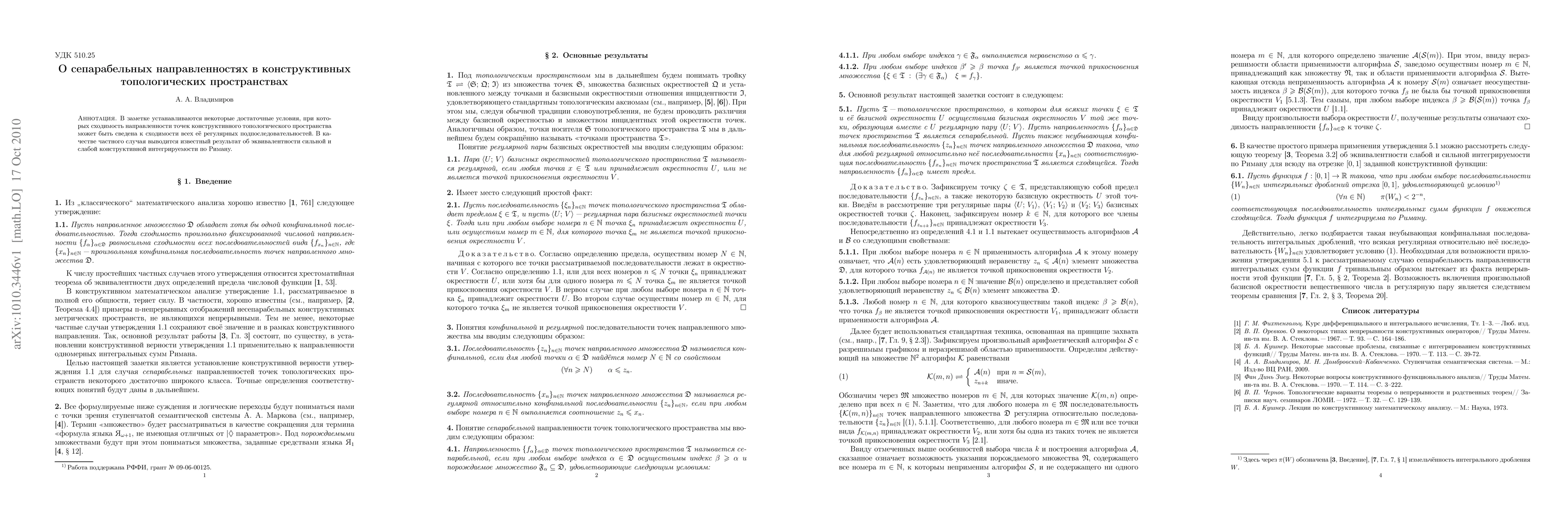 This paper explores separable nets in constructive topological spaces, demonstrating their equivalence to the convergence of all subsequences. It also proves B.A. Kushner's theorem on the coincidence of strong and weak constructive variants of Riemann's integrability as a corollary.