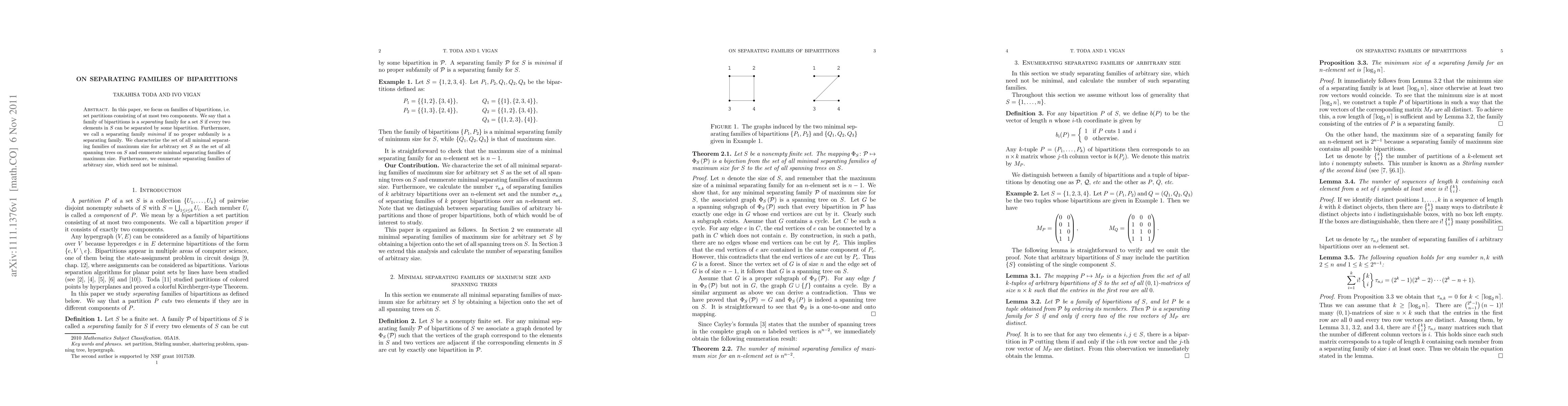 This paper characterizes minimal separating families of bipartitions for arbitrary sets, showing they correspond to spanning trees, and enumerates both minimal and non-minimal separating families of any size.