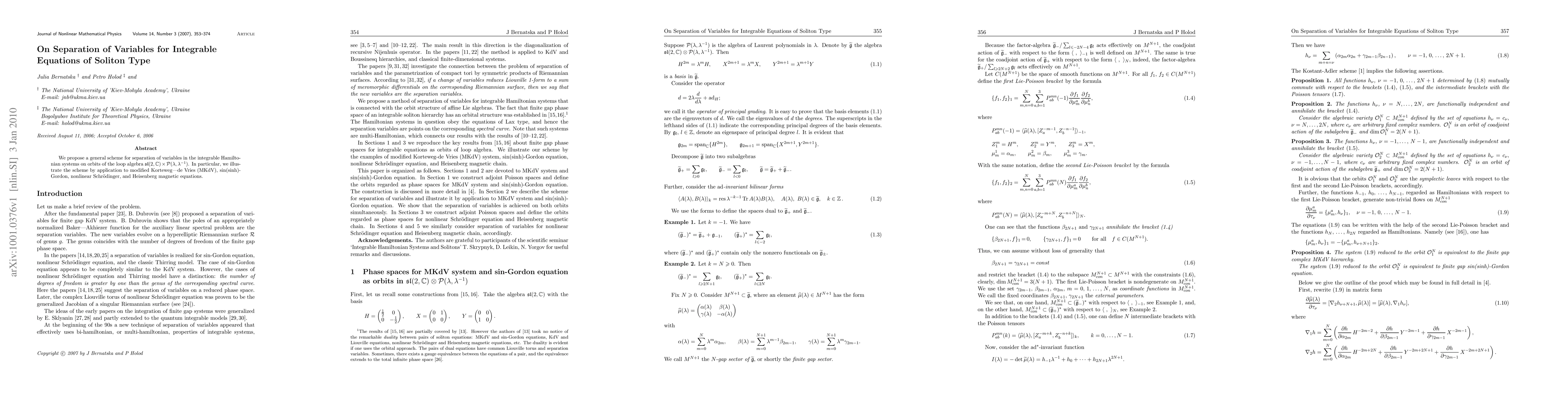 We propose a general scheme for separation of variables in the integrable Hamiltonian systems on orbits of the loop algebra $\mathfrak{sl}(2,\Complex)\times \mathcal{P}(\lambda,\lambda^{-1})$. In particular, we illustrate the scheme by application to modified Korteweg--de Vries (MKdV), sin(sinh)-Gordon, nonlinear Schr\"odinger, and Heisenberg magnetic equations.