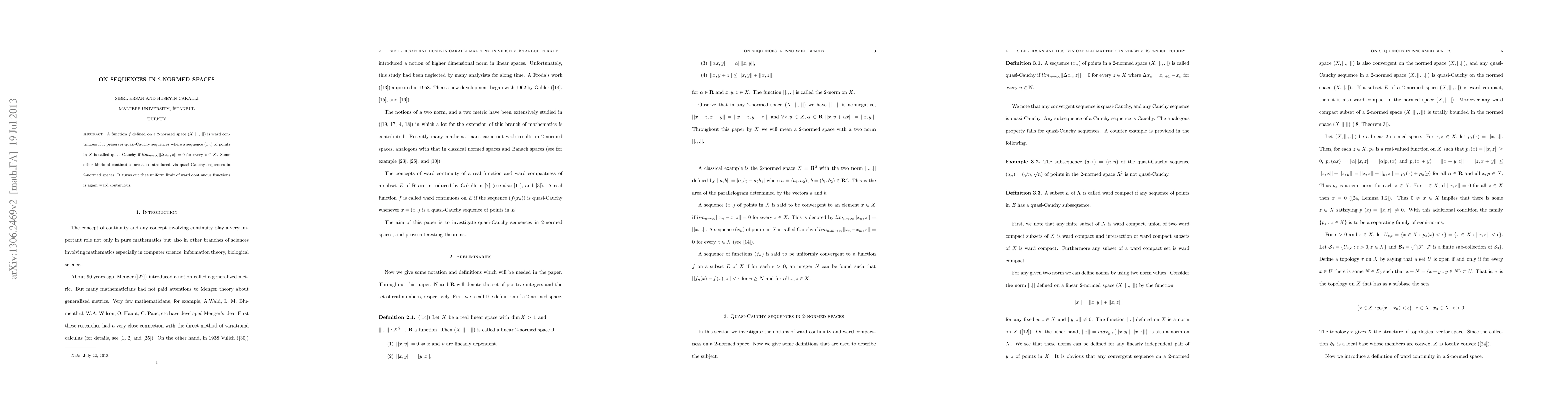 This paper explores ward continuity in 2-normed spaces, defining it through the preservation of quasi-Cauchy sequences. It also introduces various continuity types via quasi-Cauchy sequences and proves that the uniform limit of ward continuous functions remains ward continuous.