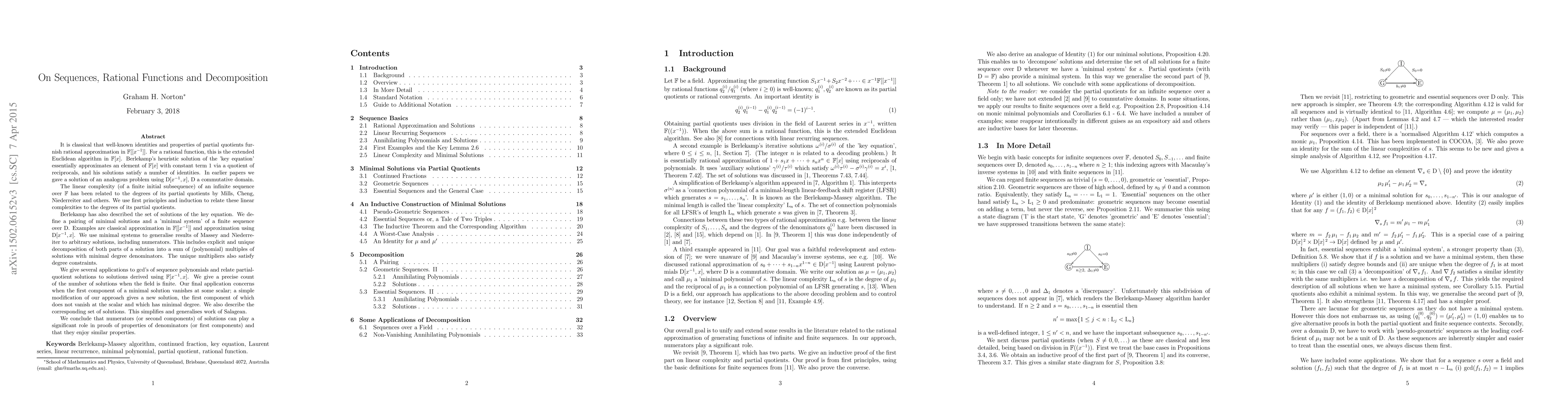 This paper unifies and extends results on approximating generating functions of sequences by rational functions, emphasizing the role of numerators. It generalizes Niederreiter's theorem on linear complexities and minimal polynomials, providing a unique decomposition for both numerators and denominators of rational functions, with applications to sequences with varying linear complexities.
