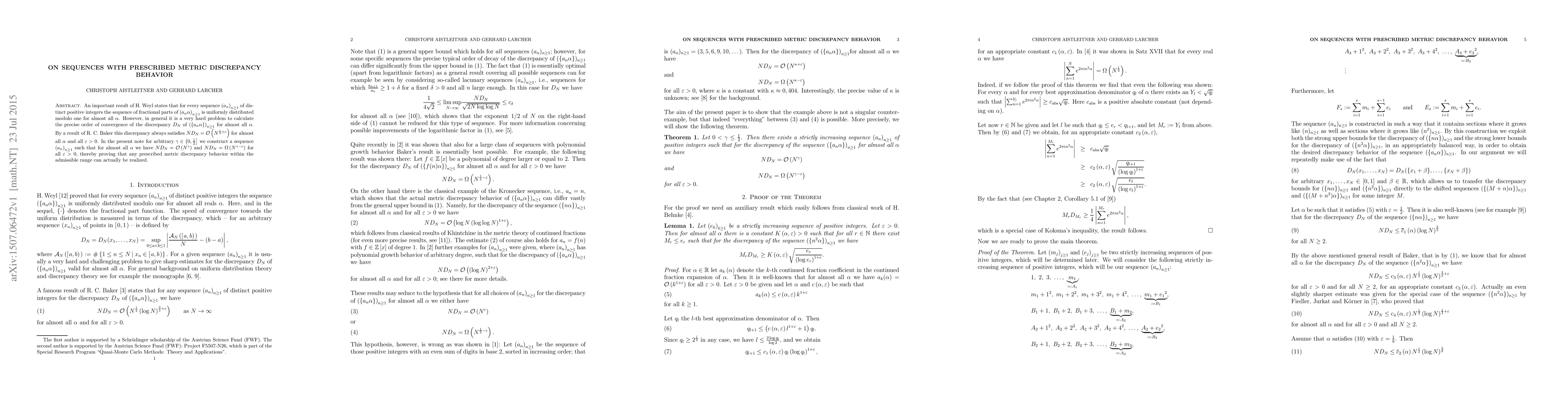 An important result of H. Weyl states that for every sequence $\left(a_{n}\right)_{n\geq 1}$ of distinct positive integers the sequence of fractional parts of $\left(a_{n} \alpha \right)_{n \geq1}$ is uniformly distributed modulo one for almost all $\alpha$. However, in general it is a very hard problem to calculate the precise order of convergence of the discrepancy $D_{N}$ of $\left(\left\{a_{n} \alpha \right\}\right)_{n \geq 1}$ for almost all $\alpha$. By a result of R. C. Baker this discrepancy always satisfies $N D_{N} = \mathcal{O} \left(N^{\frac{1}{2}+\varepsilon}\right)$ for almost all $\alpha$ and all $\varepsilon >0$. In the present note for arbitrary $\gamma \in \left(0, \frac{1}{2}\right]$ we construct a sequence $\left(a_{n}\right)_{n \geq 1}$ such that for almost all $\alpha$ we have $ND_{N} = \mathcal{O} \left(N^{\gamma}\right)$ and $ND_{N} = \Omega \left(N^{\gamma-\varepsilon}\right)$ for all $\varepsilon > 0$, thereby proving that any prescribed metric discrepancy behavior within the admissible range can actually be realized.