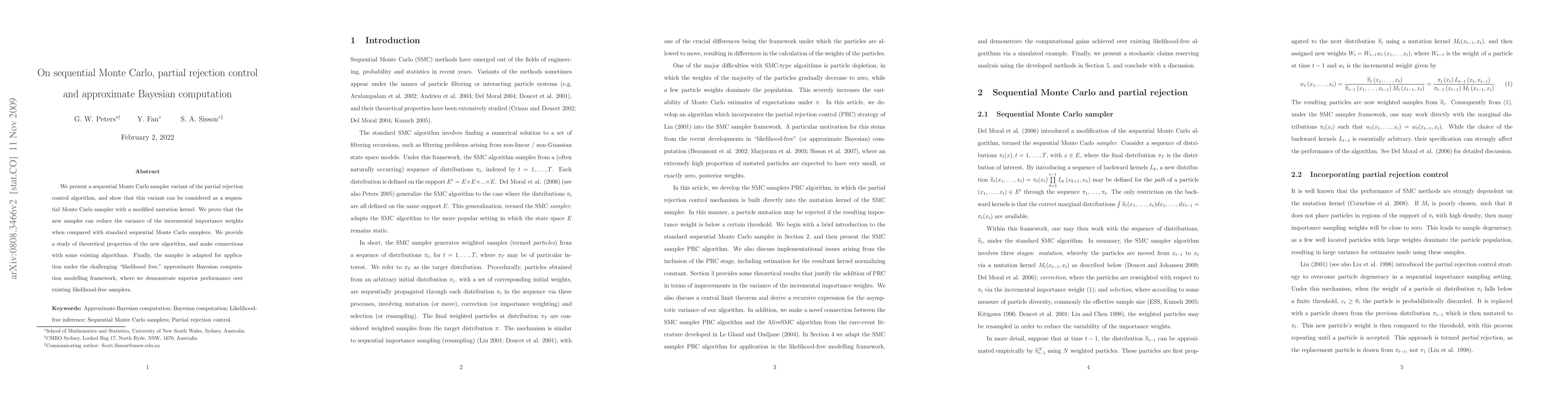 This paper introduces a modified sequential Monte Carlo sampler based on partial rejection control, which reduces the variance of incremental importance weights. It demonstrates superior performance in likelihood-free, approximate Bayesian computation scenarios compared to existing methods.