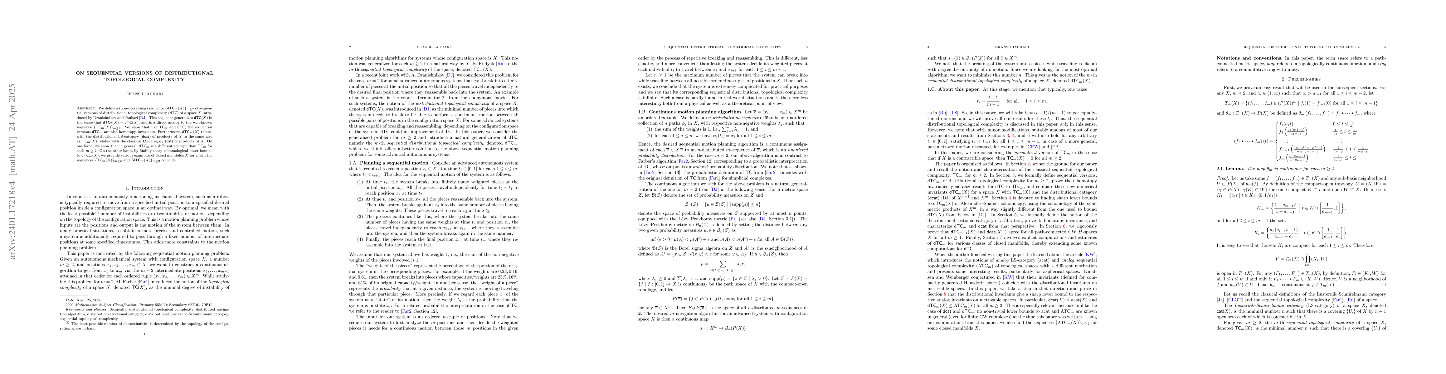 This paper introduces a sequence of higher versions of distributional topological complexity, $d\mathsf{TC}_m(X)$, generalizing the original $d\mathsf{TC}(X)$ and analogous to classical topological complexity. The authors demonstrate that these sequential versions are homotopy invariants and relate to the distributional LS-category in a manner similar to classical topological complexity.