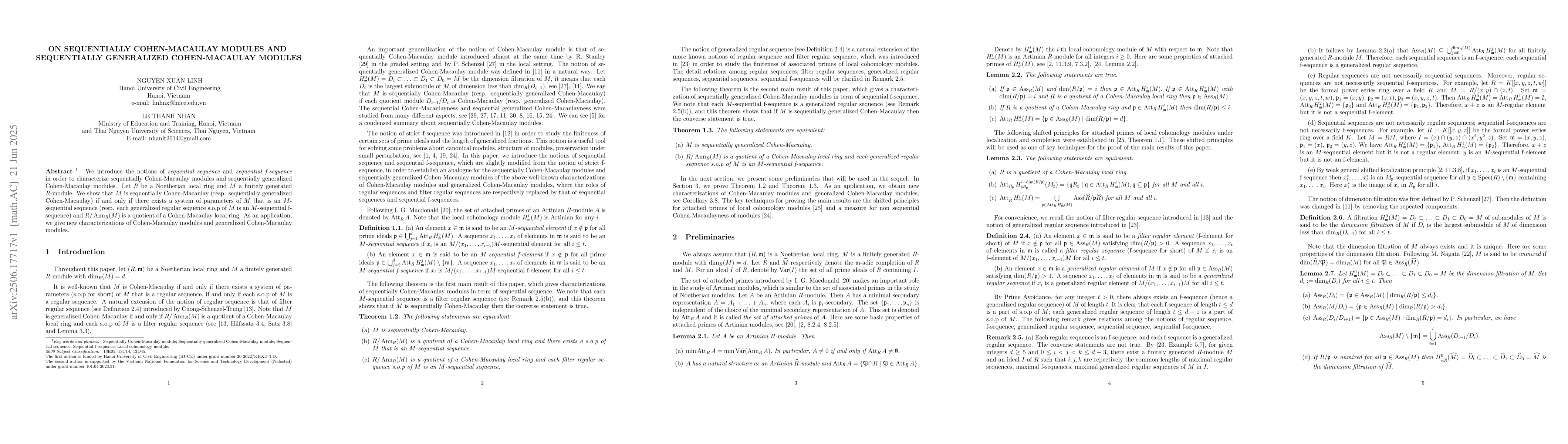 We introduce the notions of sequential sequence and sequential f-sequence in order to characterize sequentially Cohen-Macaulay modules and sequentially generalized Cohen-Macaulay modules. Let R be a Noetherian local ring and M a finitely generated R-module. We show that M is sequentially Cohen-Macaulay (resp. sequentially generalized Cohen-Macaulay) if and only if there exists a system of parameters of M that is an M- sequential sequence (resp. each generalized regular sequence s.o.p of M is an M-sequential f-sequence) and R/AnnR(M) is a quotient of a Cohen-Macaulay local ring. As an application, we give new characterizations of Cohen-Macaulay modules and generalized Cohen-Macaulay modules.