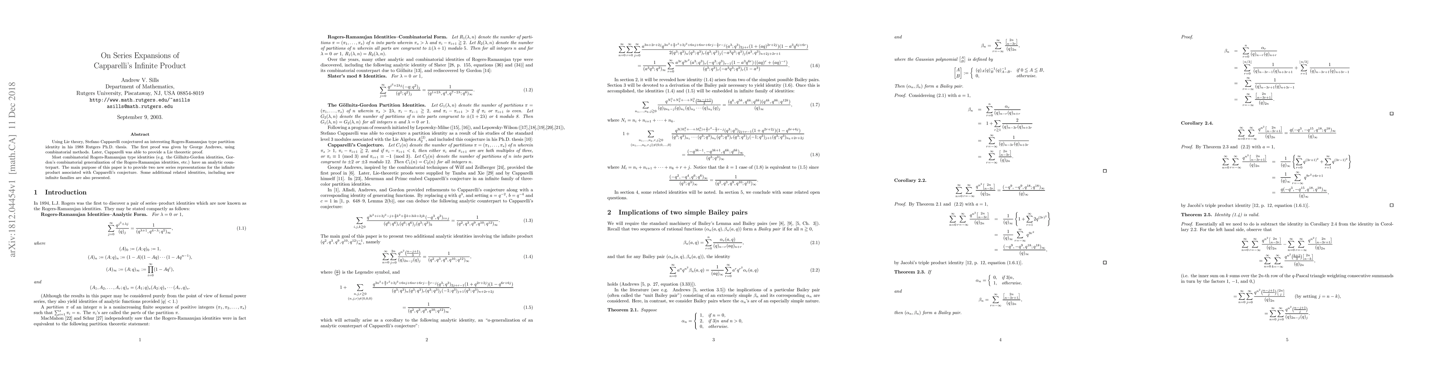 This paper presents two new series expansions for the infinite product related to Capparelli's conjecture, originally proven using combinatorial and Lie theoretic methods. Additionally, it explores new infinite families and related identities stemming from these expansions.