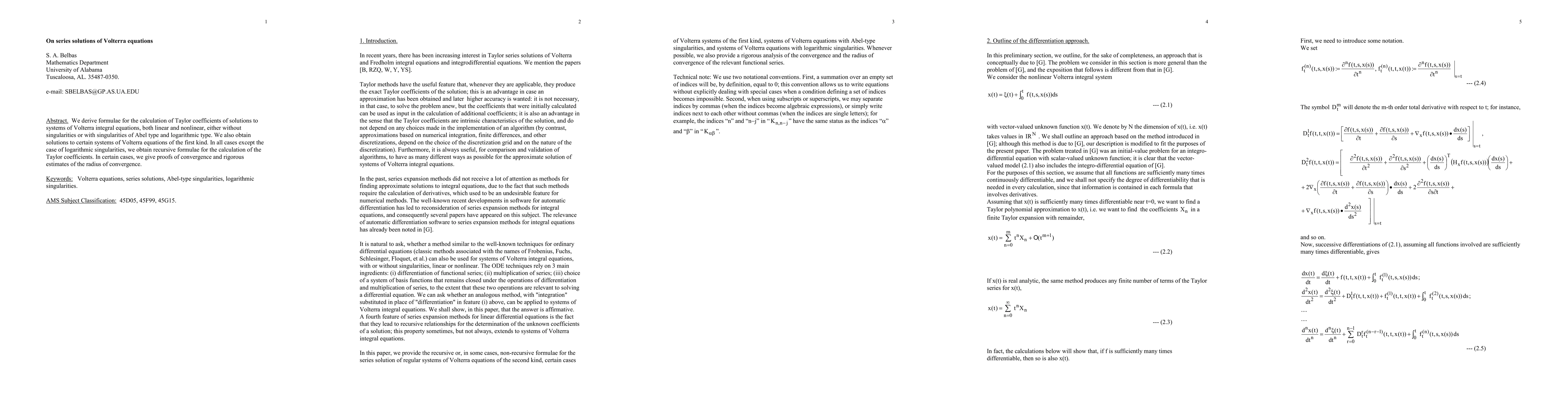 This paper develops methods for solving Volterra integral equations using series solutions and recursive formulae, with applications to linear and nonlinear systems, and provides rigorous estimates of convergence radii.
