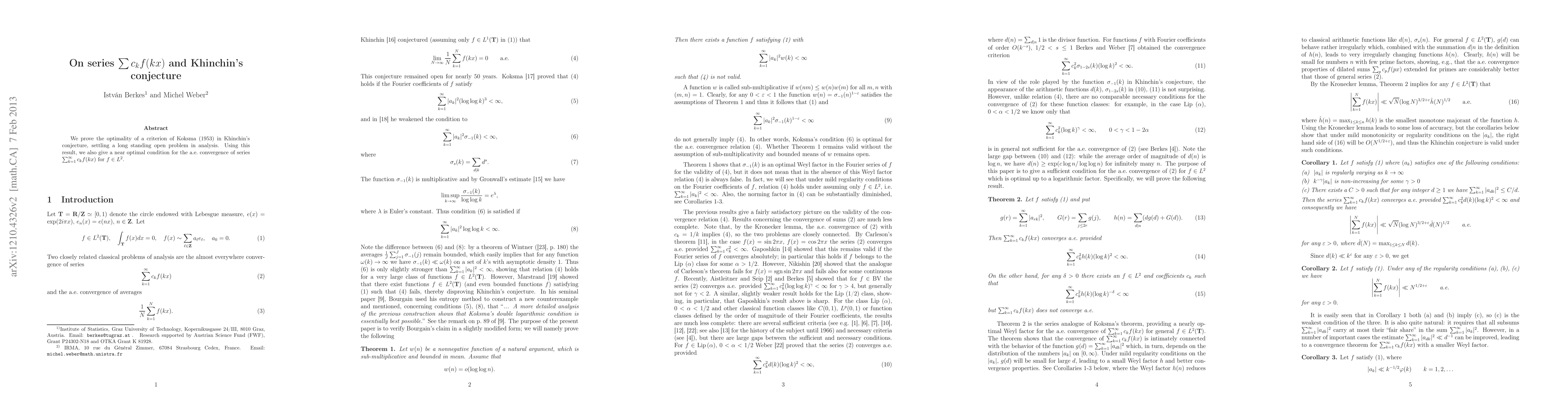 We prove the optimality of a criterion of Koksma (1953) in Khinchin's conjecture, settling a long standing open problem in analysis. Using this result, we also give a near optimal condition for the a.e.\ convergence of series $\sum_{k=1}^\infty c_k f(kx)$ for $f\in L^2$.