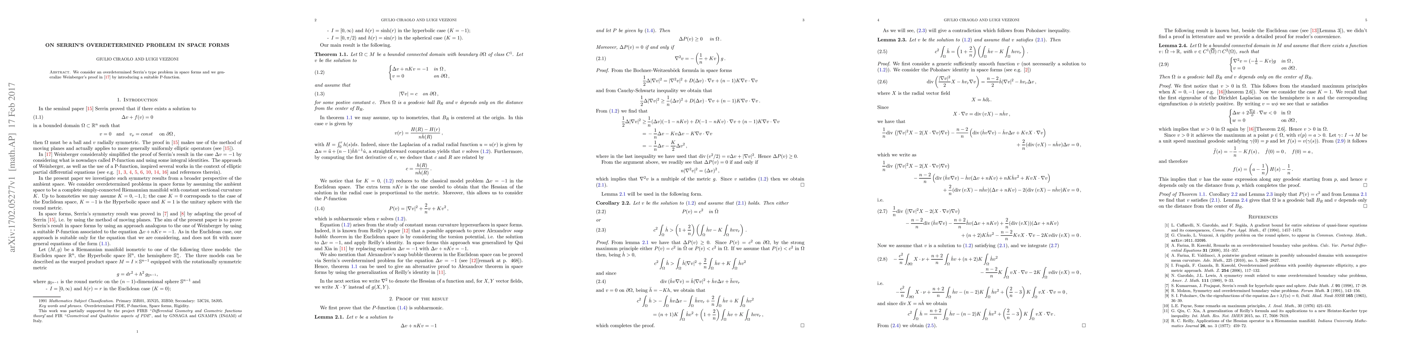 This paper generalizes Weinberger's proof for an overdetermined Serrin's problem in space forms, introducing a new P-function to address the problem. The study extends the existing results to broader geometric contexts.