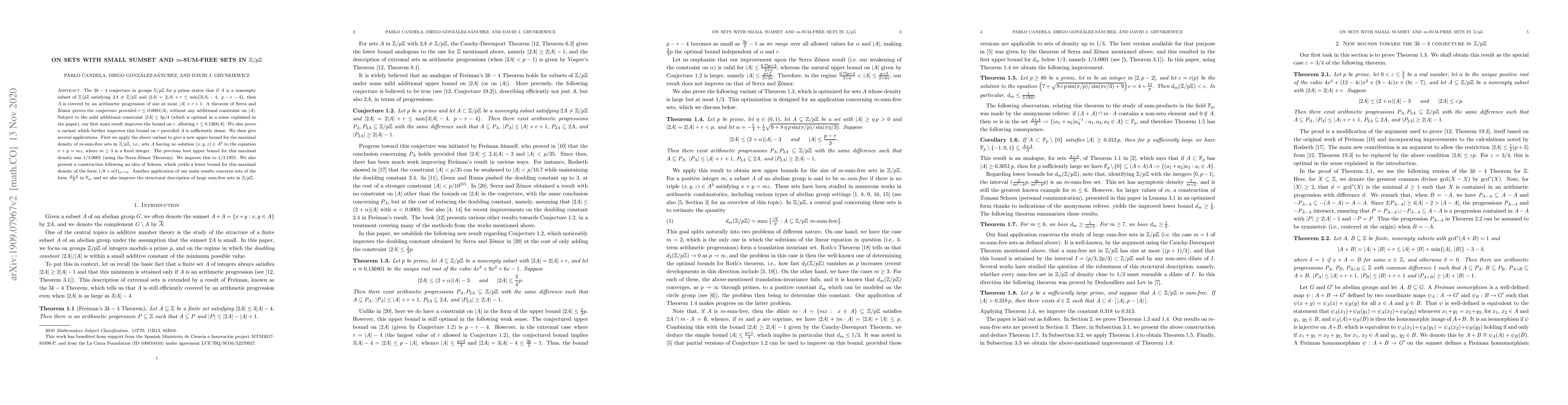 The $3k-4$ conjecture in groups $\mathbb{Z}/p\mathbb{Z}$ for $p$ prime states that if $A$ is a nonempty subset of $\mathbb{Z}/p\mathbb{Z}$ satisfying $2A\neq \mathbb{Z}/p\mathbb{Z}$ and $|2A|=2|A|+r \leq \min\{3|A|-4,\;p-r-4\}$, then $A$ is covered by an arithmetic progression of size at most $|A|+r+1$. A theorem of Serra and Z\'emor proves the conjecture provided $r\leq 0.0001|A|$, without any additional constraint on $|A|$. Subject to the mild additional constraint $|2A|\leq 3p/4$ (which is optimal in a sense explained in the paper), our first main result improves the bound on $r$, allowing $r\leq 0.1368|A|$. We also prove a variant which further improves this bound on $r$ provided $A$ is sufficiently dense. We then give several applications. First we apply the above variant to give a new upper bound for the maximal density of $m$-sum-free sets in $\mathbb{Z}/p\mathbb{Z}$, i.e., sets $A$ having no solution $(x,y,z)\in A^3$ to the equation $x+y=mz$, where $m\geq 3$ is a fixed integer. The previous best upper bound for this maximal density was $1/3.0001$ (using the Serra-Z\'emor Theorem). We improve this to $1/3.1955$. We also present a construction following an idea of Schoen, which yields a lower bound for this maximal density of the form $1/8+o(1)_{p\to\infty}$. Another application of our main results concerns sets of the form $\frac{A+A}{A}$ in $\mathbb{F}_p$, and we also improve the structural description of large sum-free sets in $\mathbb{Z}/p\mathbb{Z}$.